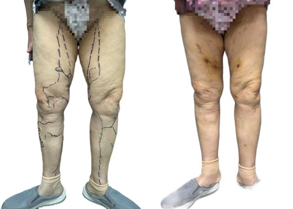 大隐静脉高位结扎+腔内射频+硬化剂注射 术前术后对比