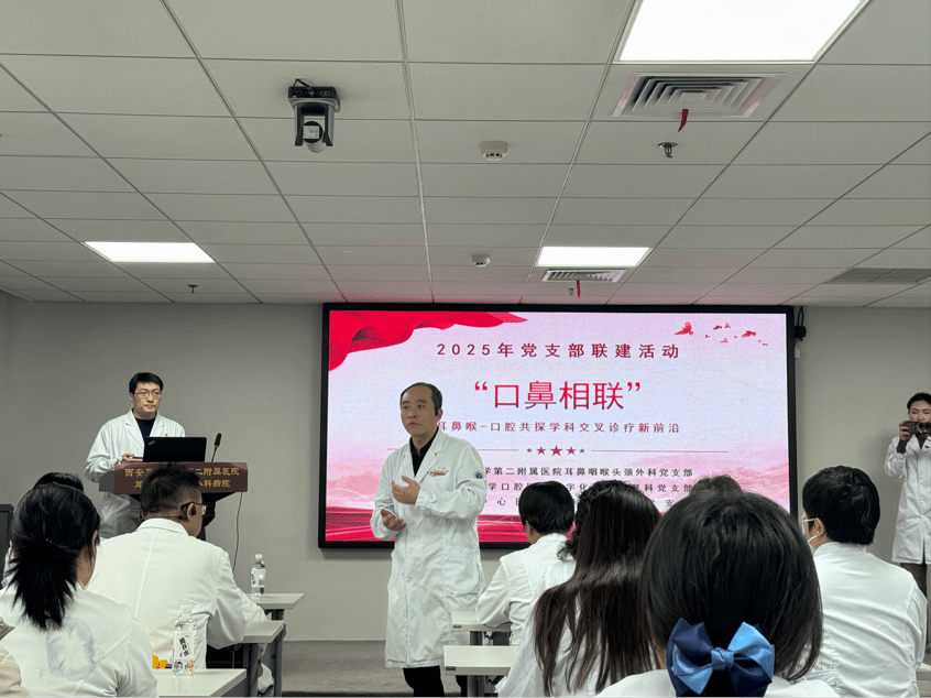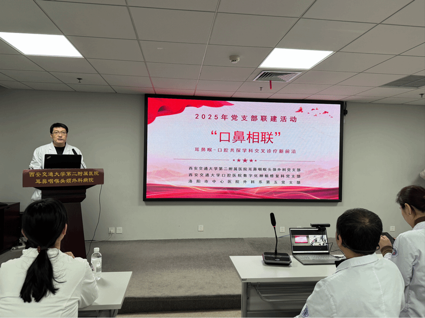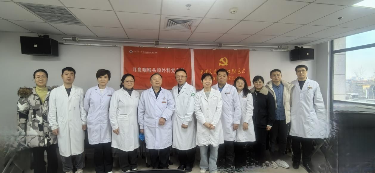 为进一步推动党建与临床工作融合创新,提升党组织在医疗工作中的引领作用,2025年1月8日,由西安交通大学第二附属医院耳鼻咽喉头颈外科党支部、西安交通大学口腔医院数字化种植修复科党支部和洛阳市中心医院外科系第五党支部于西安交大二附院西门诊住院楼六楼耳鼻喉科会议室联合开展“口鼻相联”主题党日活动,以共同探讨耳鼻喉-口腔学科交叉诊疗新前沿。