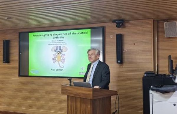 随后,Rikard Holmdahl教授进行了题目为《From insights to diagnostics of rheumatoid arthritis》的学术报告,汇报了其团队关于类风湿性关节炎(RA)新型诊断技术的研究进展。Rikard Holmdahl教授还开发了针对糖基化CII特异性T细胞的诊断工具,用于预测和监控疫苗接种效果,帮助早期识别和治疗RA。这一创新性研究有望为类风湿性关节炎的早期诊断和精准治疗开辟新的前景,极大提升患者的生活质量。