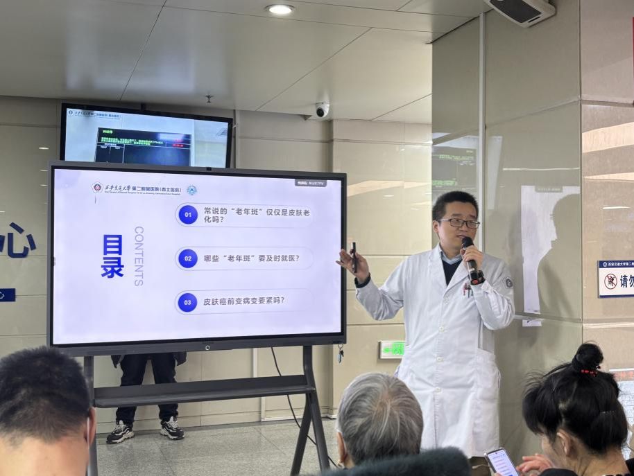 为了让更多人了解皮肤常见问题,更好地关爱自身健康,1月15日,门诊部特邀皮肤科朱龙飞医生在综合楼三层候诊厅开展了《长了这样的老年斑,您就要当心》的科普讲座。现场气氛热烈,患者朋友们积极参与,认真听讲并拍照记录,共同学习皮肤健康知识。