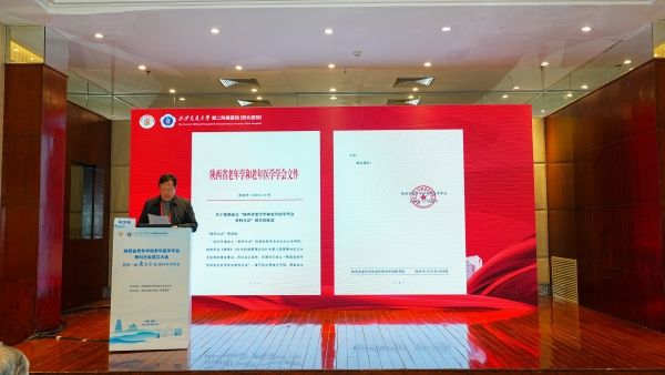陕西省老年学和老年医学学会杨文彬副会长宣读批复文件
