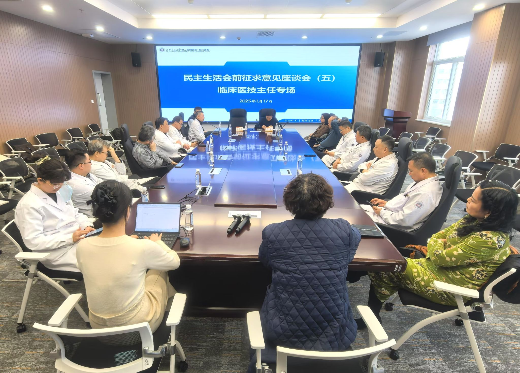 为深入推进医院高质量发展内涵建设和卓越学科发展,提升医院管理能力和水平。按照学校党委《关于开好2024年度二级单位党员领导干部民主生活会的通知》的部署要求和工作安排,院党委于1月15-24日先后组织离退休职工代表、统一战线人士代表、临床医技科室新任干部代表、临床医技科室续任干部代表、管理职能部门干部职工代表、青年骨干和人才代表召开了6场领导班子民主生活会前意见征询会。会议以坚持医院高质量发展为第一要务,以提升医院管理能力、强化学科发展内涵为重点,广泛听取全院党员干部和教职员工围绕医院、学科发展,对领导班子、班子成员履职等方面提出意见及建议,医院领导班子成员分组参加了座谈会。