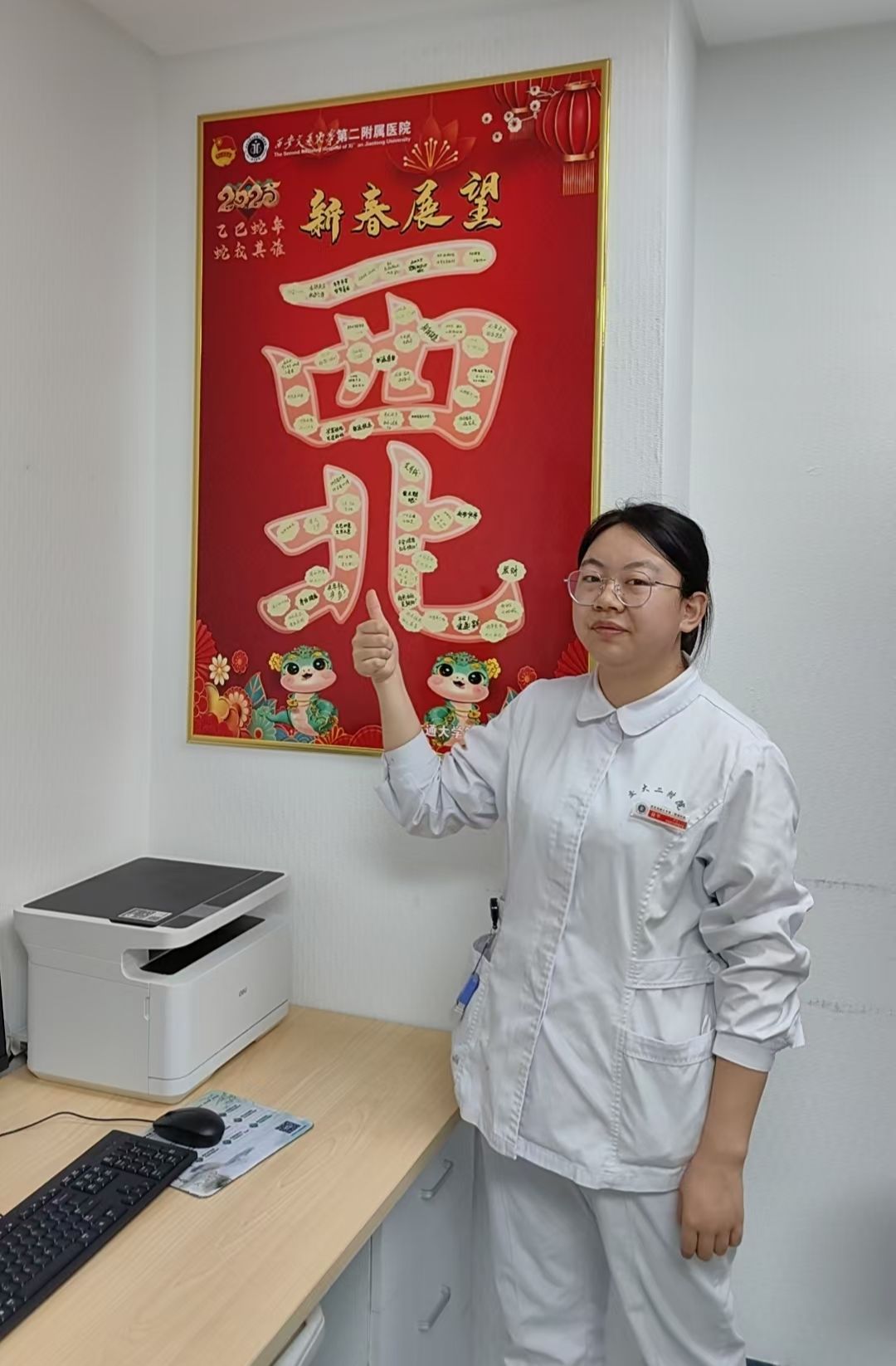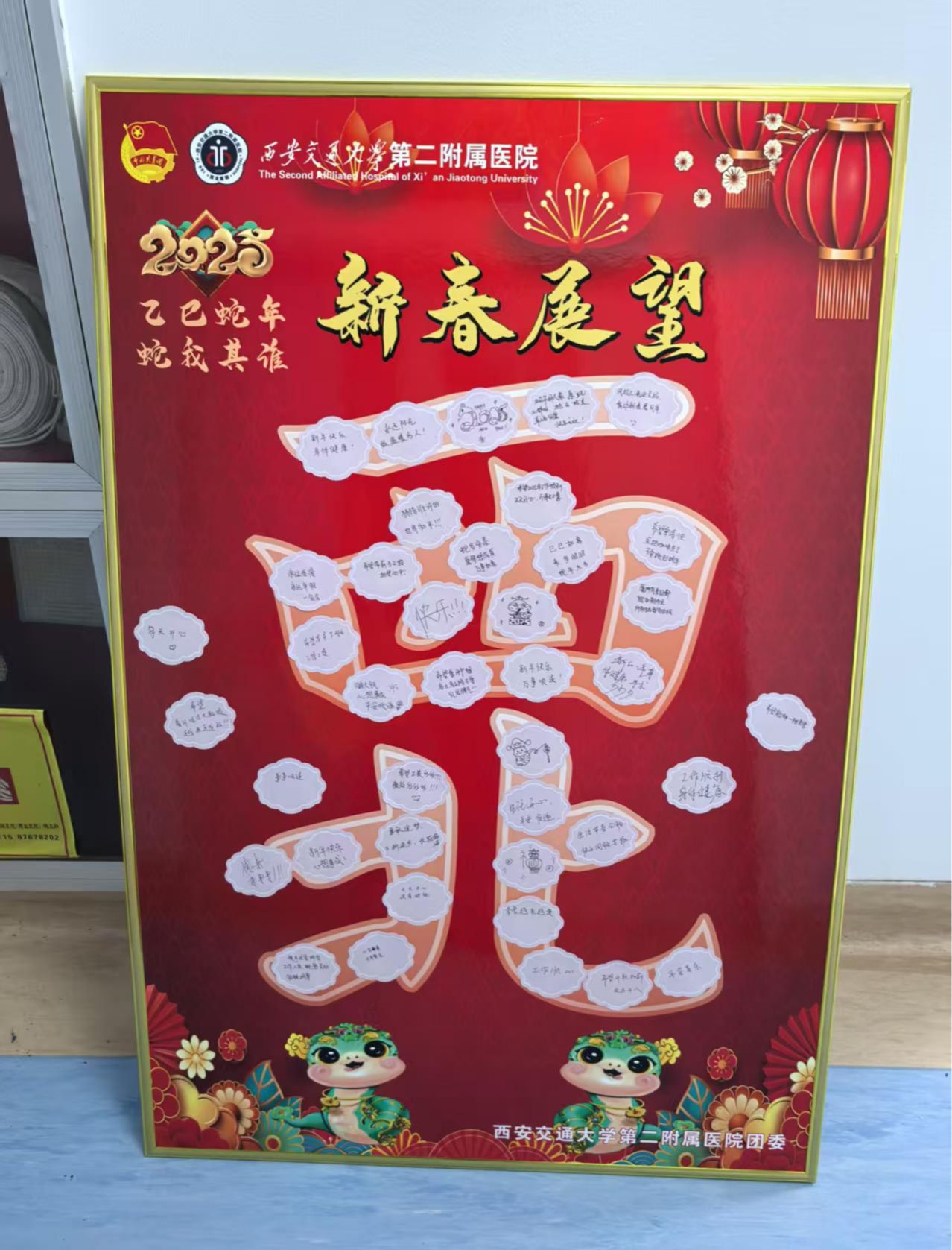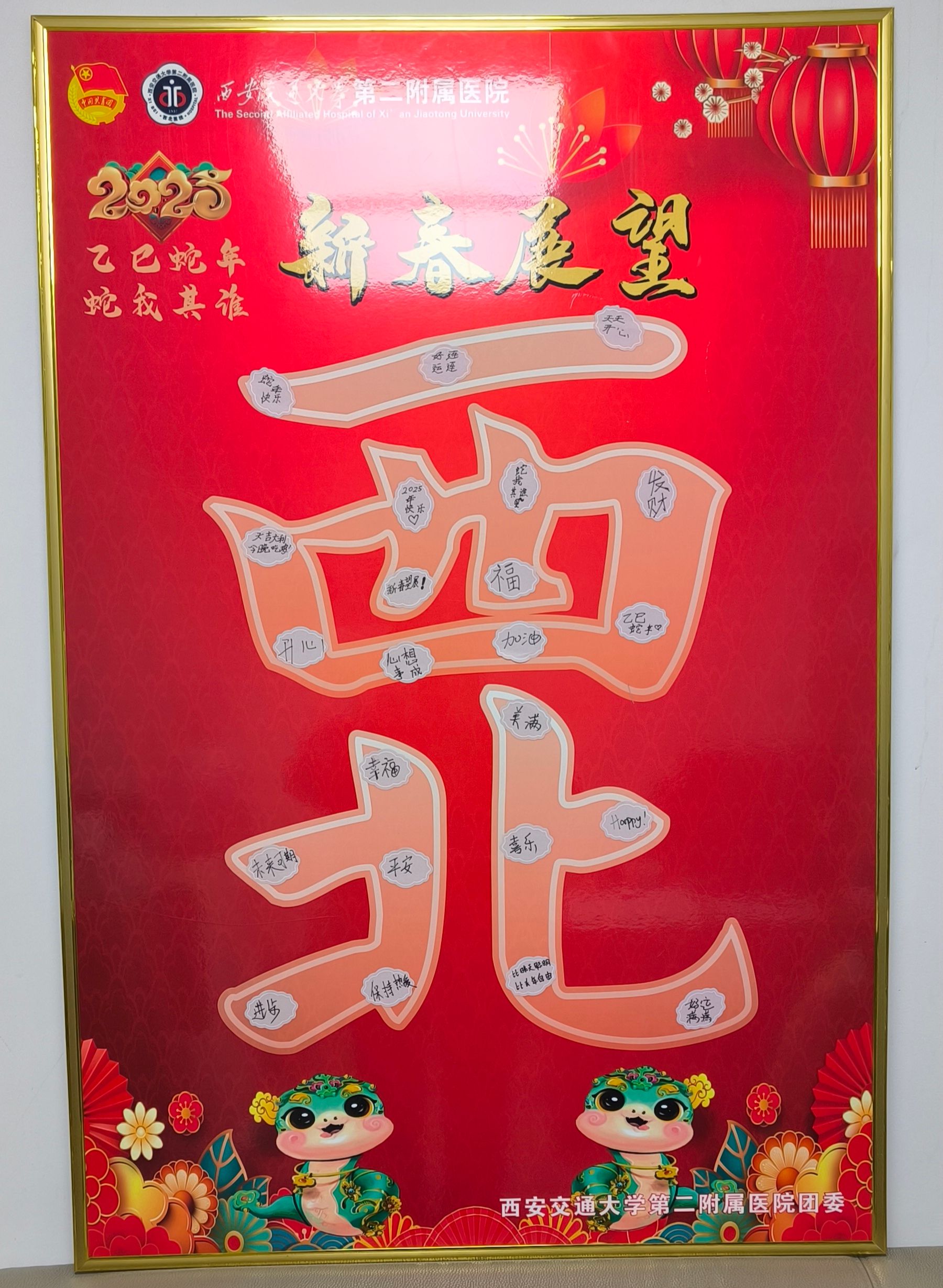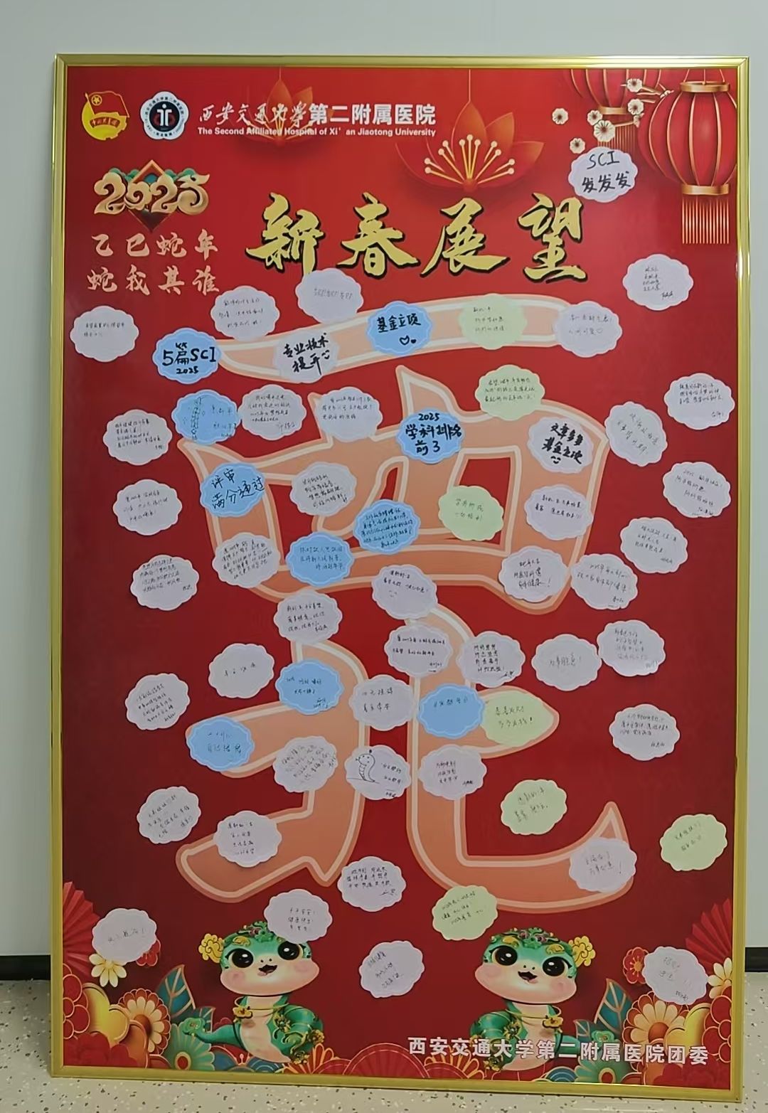 蛇年将至,院团委开展2025年“巳巳如意”青春展望活动。院团委专门设计出寓意吉祥和“西北”字样的展板和异形贴。在全院各团总支书记、各团支部书记的组织号召下,全院团员青年纷纷在贴纸上写下了自己的新年期许和对未来的美好祝愿。