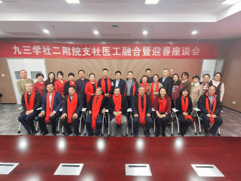 2025年1月23日,九三学社西安交通大学委员会二附院支社医工融合暨迎春座谈会在我院召开。九三学社陕西省委员会专职副主委曹增武、社会服务部副部长丁鹏飞,西安交通大学党委常委统战部长成进、副部长邢旭宁,我院党委书记刘昌,九三学社陕西省委员会副主委、西安交通大学委员会主委陈斌,前任主委诸文俊,副主委黄辰、蒋月桂,秘书长郑春莉,医学支社主委吴锋、副主委史小莲、赵凌宇、韩晶,我院支社前任主委郝明安、薛红安,副主委朱建宏、李向红、薛嘉虹、刘小兰及九三社员40余人齐聚一堂,共商医工融合发展大计,喜迎新春佳节。