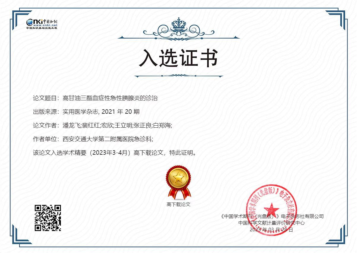 裴红红教授团队长期专注于ICU内危重症患者的临床和基础研究,该团队在《实用医学杂志》上发表的《高甘油三酯血症性胰腺炎的诊治》同样获得高下载TOP 1%论文,总下载频次高达723次。