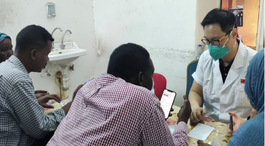 义诊活动由中国驻苏丹大使馆,中国-苏丹友好协会,当地行政部门及中国医疗队共同组织,旨在帮助当地人民改善健康状况,增进中苏友好关系。义诊在沈迪大学附属医院进行,开设了内、外、妇、儿,超声、中医等多个专业门诊。当地民众对中国医生的到来和免费义诊活动充满了期待,在简单而隆重的欢迎仪式后,义诊开始。此时就诊人群早已挤满了整个院子。