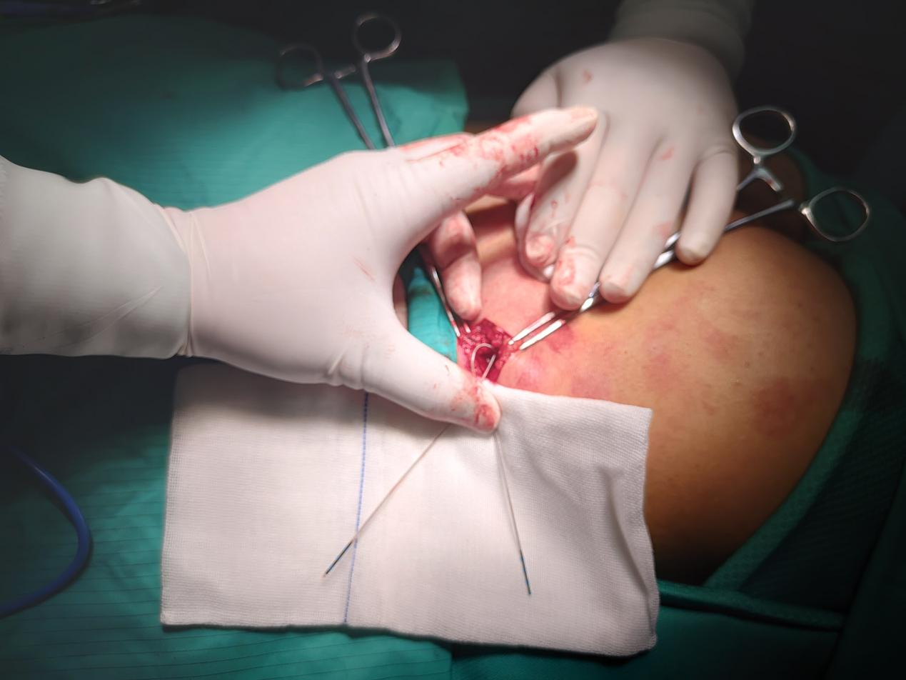 (种铁主任、陈琦副主任医师手术中)