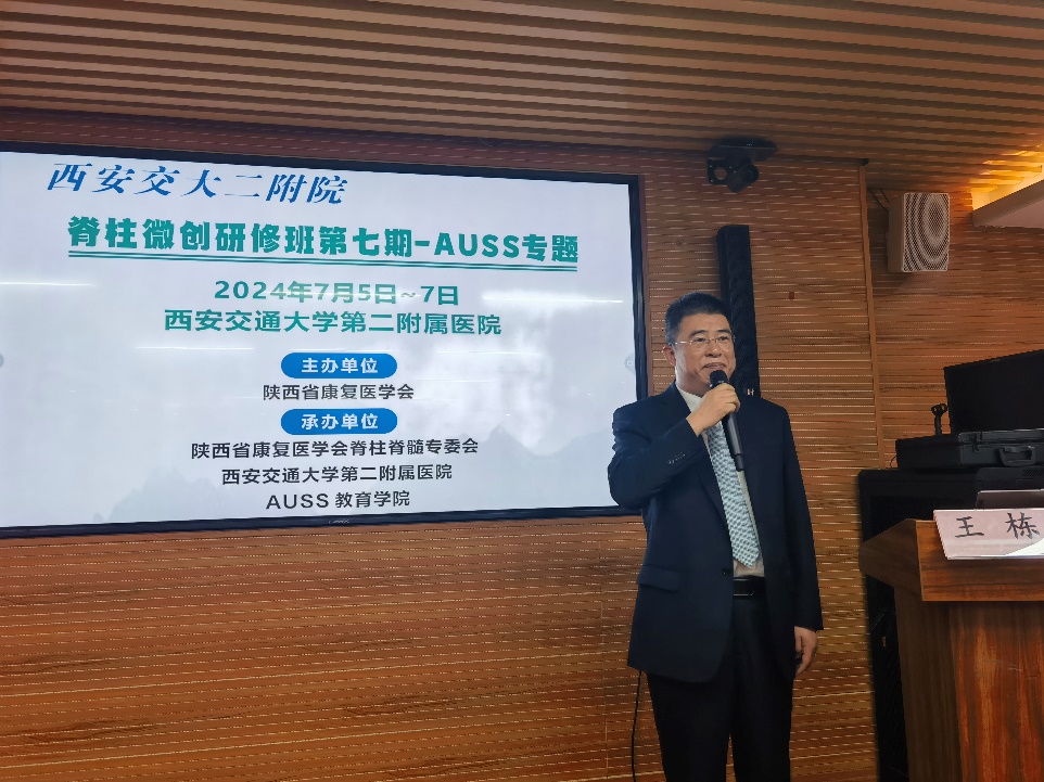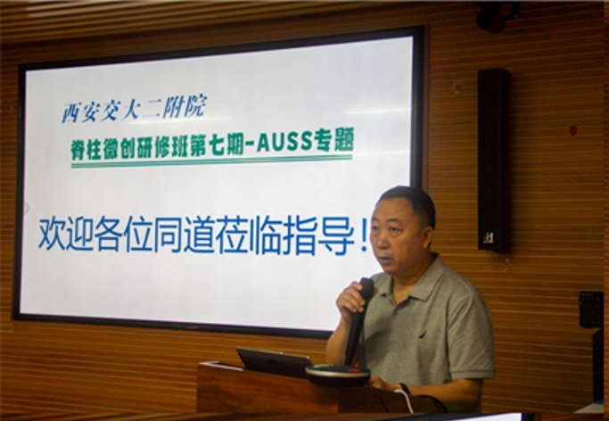 7月6日上午,西安交通大学第二附属医院脊柱微创第七期研修班-AUSS专题研修班开班,由交大二院脊柱与骨肿瘤病区李锋涛教授主持,研修班在陕西省康复医学会秘书长袁海峰教授和骨科中心李浩鹏主任的祝福致辞下顺利启航。