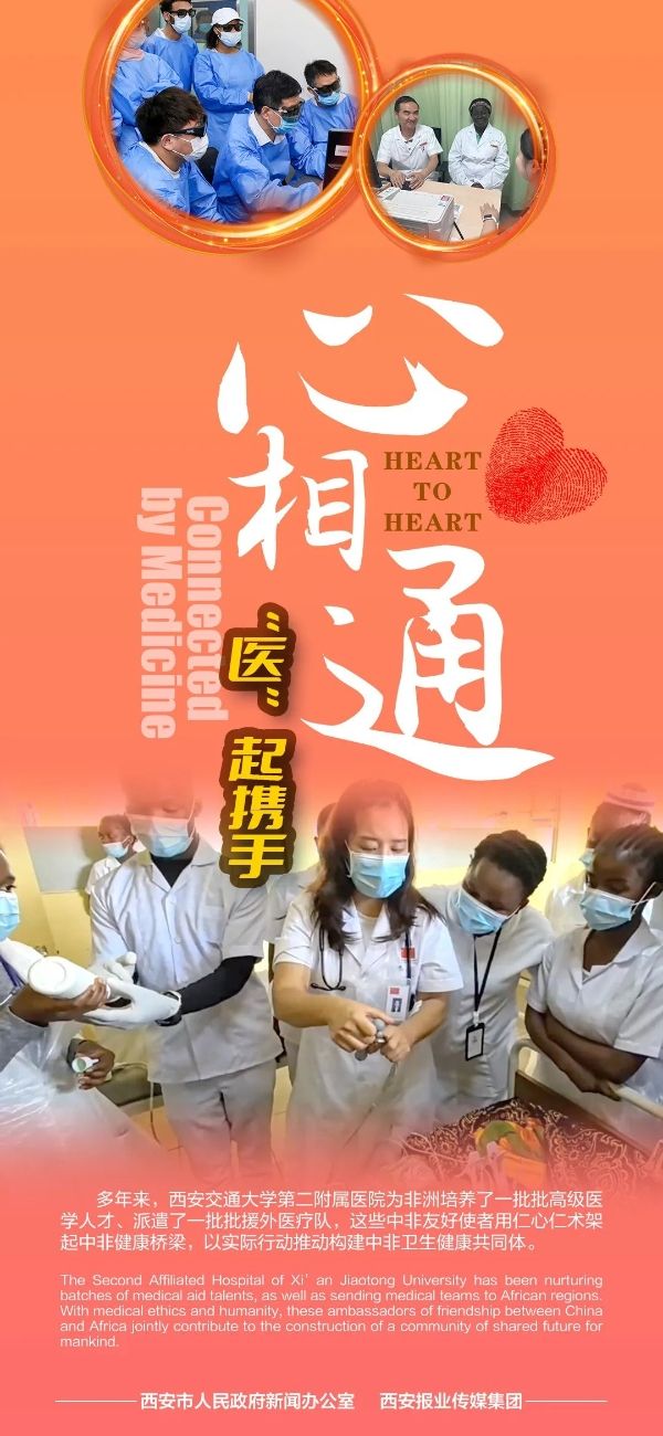 为深入学习贯彻党的二十届三中全会和省委十四届六中全会精神,全媒体宣传展示全省上下奋力谱写中国式现代化建设的陕西新篇章的生动实践,充分发挥正能量激励人、鼓舞人、领导人的重要作用,省委网信办特举办此次征集活动。中非友好穿越时空、薪火相传,在大灾大疫面前同甘苦、共拼搏,书写了一个个中非友好的感人故事。多年来,我院为非洲培养了一批批高级医学人才,派遣了一批批援外医疗队,这些中非友好使者用仁心仁术架起中非健康桥梁,以实际行动推动构建中非卫生健康共同体。
