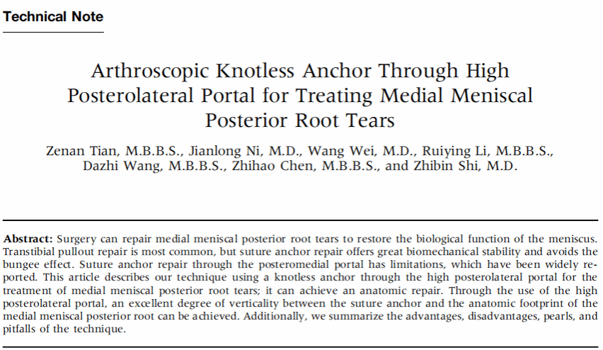Zenan Tian, Jianlong Ni, Wang Wei, Ruiying Li, Dazhi Wang, Zhihao Chen, Zhibin Shi,Arthroscopy Techniques, 2025, 103457, ISSN 2212-6287,https://doi.org/10.1016/j.eats.2025.103457.