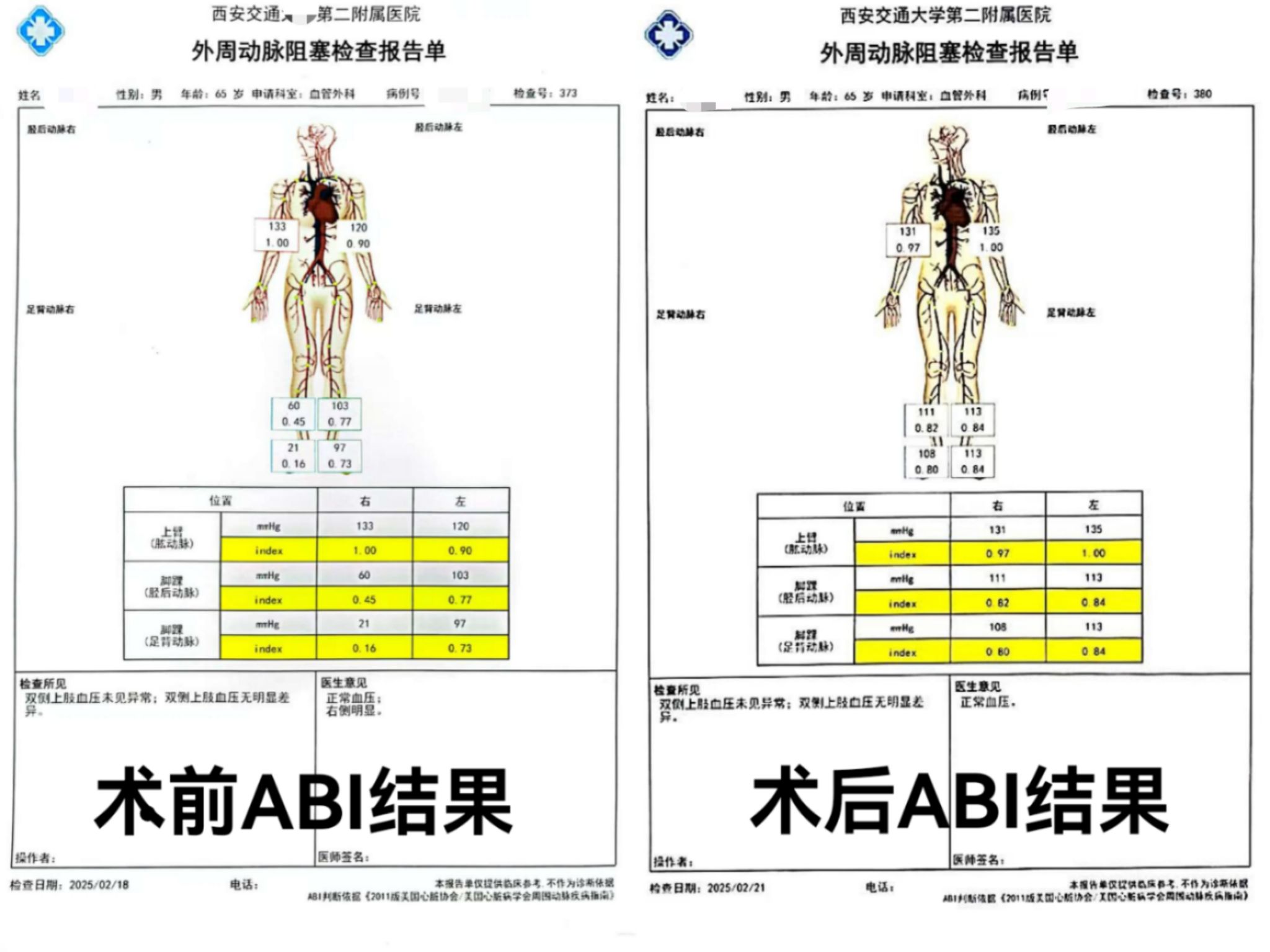 65岁男性患者,术前ABI