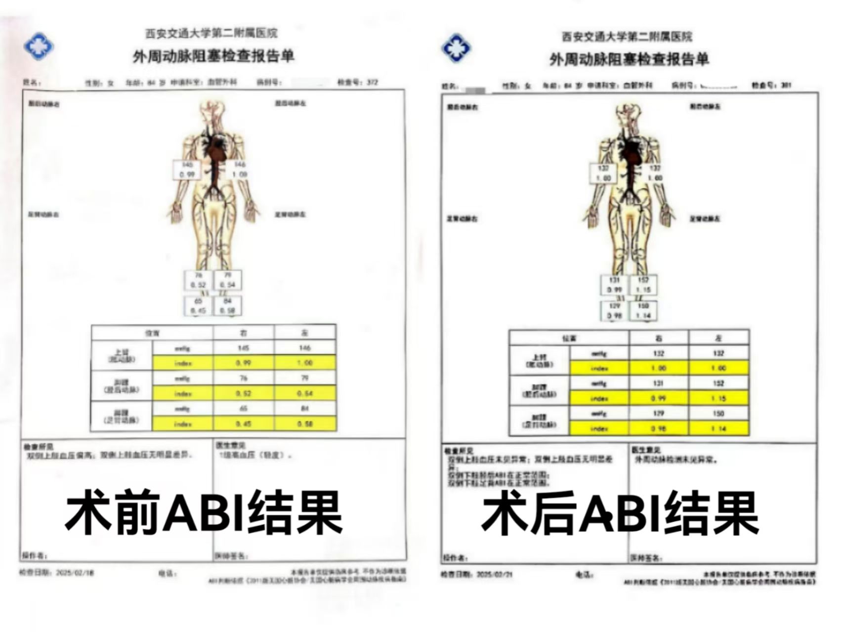 84岁女性患者,术前ABI
