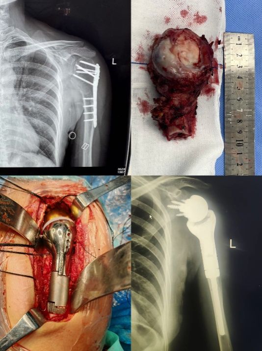 2月19日,在麻醉科赵亚琴教授团队和手术室团队的配合下,由时志斌教授主刀,倪建龙副主任医师、宋启春副研究员、吕雷锋博士和梁佳林博士的配合下,历时3个小时的手术,顺利为患者完成左侧肱骨近端肿瘤广泛切除+反向肩关节置换术,术后患者恢复良好,目前正在进行肿瘤控制治疗和肩关节功能康复治疗。