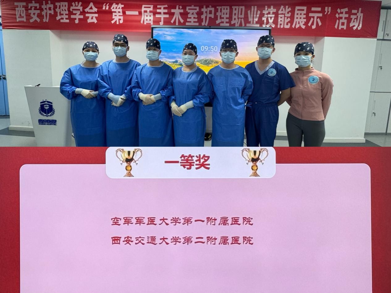 阳春三月,万物复苏。3月1日,由西安市护理学会主办的“第一届手术室护理职业技能展示”活动在空军军医大学第一附属医院举行。由我院手术室古茹副护士长带队,姚洋、刘儒忠、樊天乐、张庚、张森渊、李棪臻、杨于瑶7名护理人员组成的参赛团队在西安市“第一届手术室护理职业技能展示”活动中荣获一等奖,展现了手术室的专业技能水平及团队精神风采。
