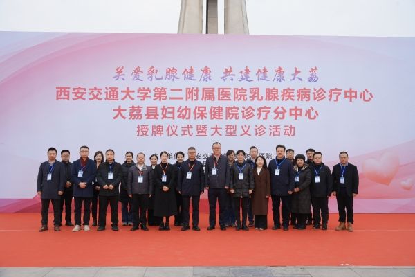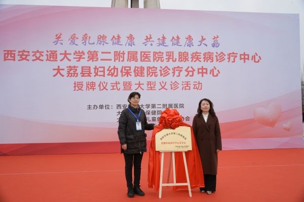 3月7日,西安交通大学第二附属医院乳腺疾病诊疗分中心在大荔县妇幼保健院揭牌。揭牌仪式由西安交通大学第二附属医院乳腺疾病诊疗中心主任张淑群与大荔县妇幼保健院院长王丽共同完成。该分中心的成立旨在完善大荔县妇幼保健院乳腺疾病诊疗体系,全方位提升该地区诊疗水平,满足大荔县及周边地区百姓对乳腺疾病的多样化医疗需求。同时,多学科义诊活动也在有序开展。大荔县卫健局副局长何辉、郭香蕊出席活动并分别致辞。西安交通大学第二附属医院医务部常务副主任王虎清、新院区筹建办主任晁玥、乳腺疾病诊疗中心副主任刘棣等参加了此次活动。