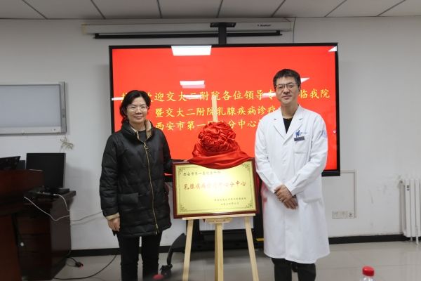 3月12日,西安交通大学第二附属医院乳腺疾病诊疗分中心在西安市第一医院揭牌。揭牌仪式由西安交通大学第二附属医院乳腺疾病诊疗中心主任张淑群与西安市第一医院普外科主任王菲共同完成。西安市第一医院副院长刘佩勇、医联办主任燕芳,西安交通大学第二附属医院医务部副主任张晨,乳腺疾病诊疗中心副主任刘棣、闵卫利教授、梁宝宝,影像科陈欣教授参加了会议。
