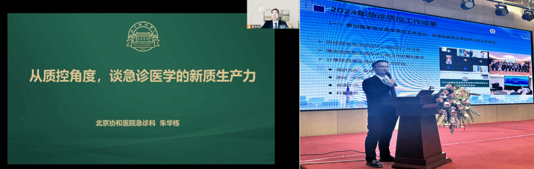 在学术研讨环节,国家急诊质控中心主任朱华栋教授通过云端连线,为大会作《从质控角度,谈急诊医学的新质生产力》的专题报告。朱主任在报告中指出,新质生产力的主要特点就是创新,是学科高质量发展的动力,同时还再次强调了急诊质控年度改进目标以及实现该目标的可行性路径,为下一步质控工作指明了方向。我院急诊科张正良教授依托详实的数据,对全省急诊质控指标落实情况做了阐述,同时对2024年陕西省急诊质控工作进行了总结,介绍了2025年省急诊质控中心的工作规划与工作要点。
