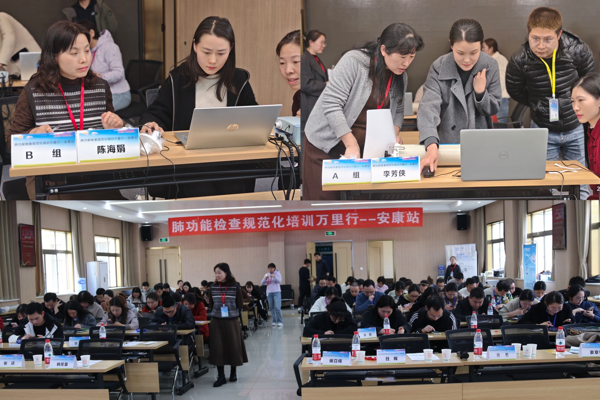 随后,“肺功能检查规范化培训万里行—安康站”活动顺利开展。杨拴盈、张洁、和平、陈海娟、李芳侠、李姗姗、张红妮等专家参与其中,通过理论讲解、实操演示等方式,对肺功能检测技术规范、结果判读等内容进行系统培训,此次培训招收安康各县市基层医院学员70余名,有效提升了安康市相关医务人员的专业技能。
