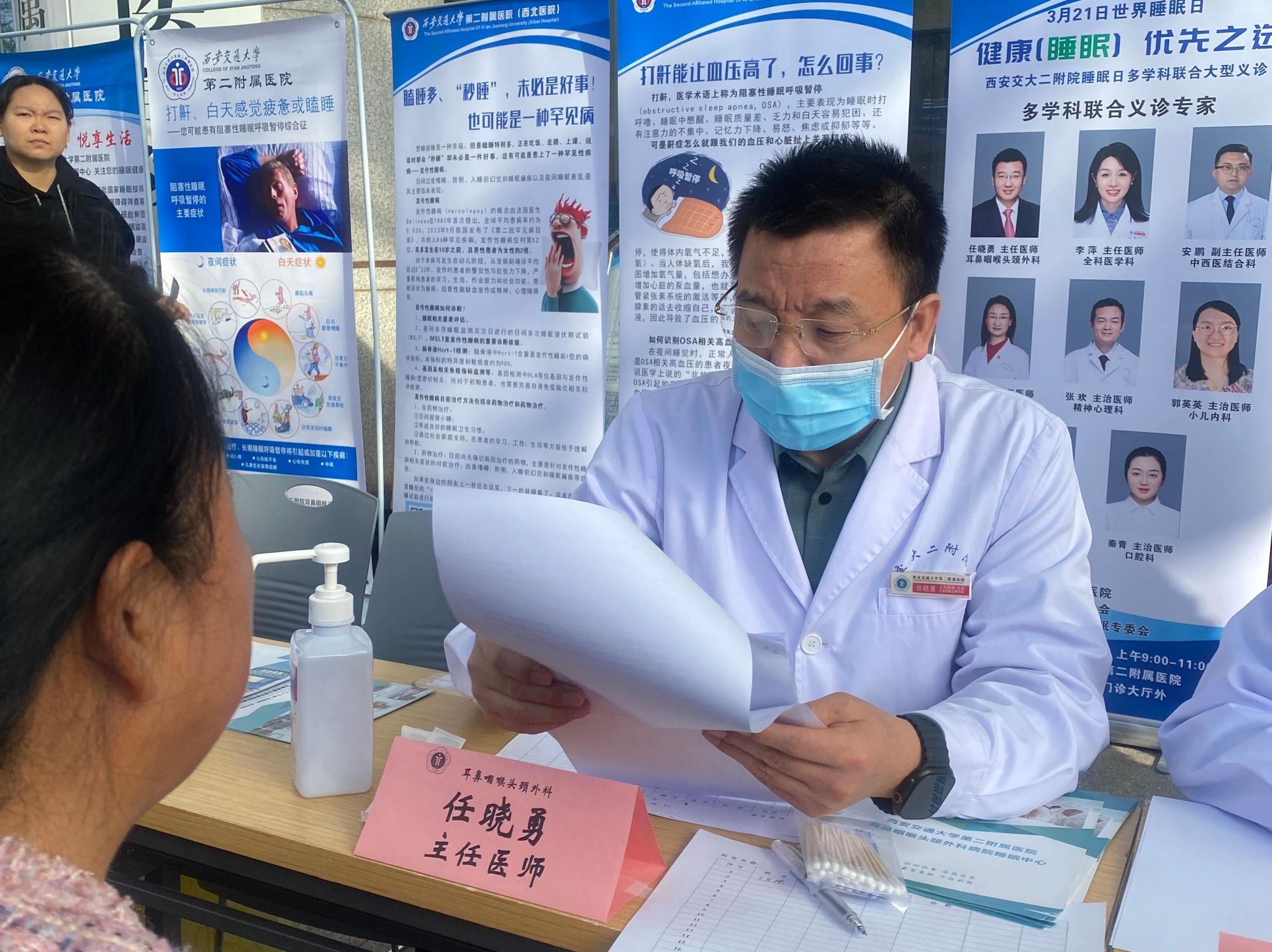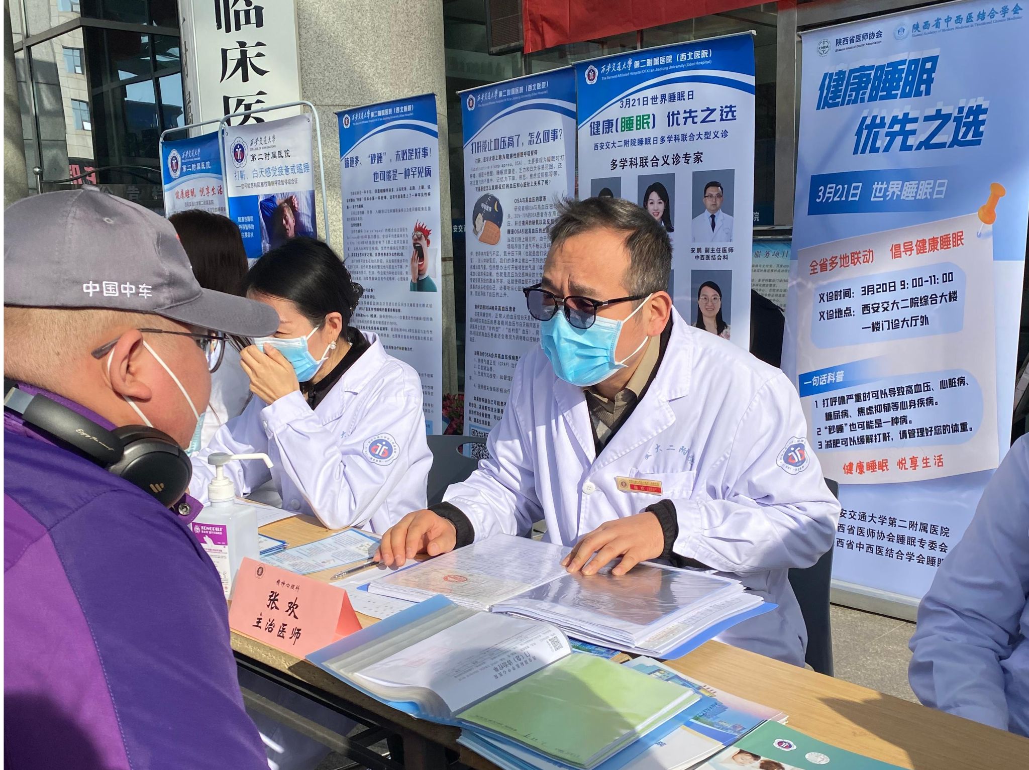本次活动由西安交通大学第二附属医院、陕西省医师协会睡眠医学专委会和陕西省中西医结合学会睡眠医学专委会主办,我院睡眠相关七个临床科室及交大口腔医院等专家积极参与,于3月20日上午在医院综合大楼一层门诊大厅外开展大型联合义诊活动,共筑健康睡眠新防线。