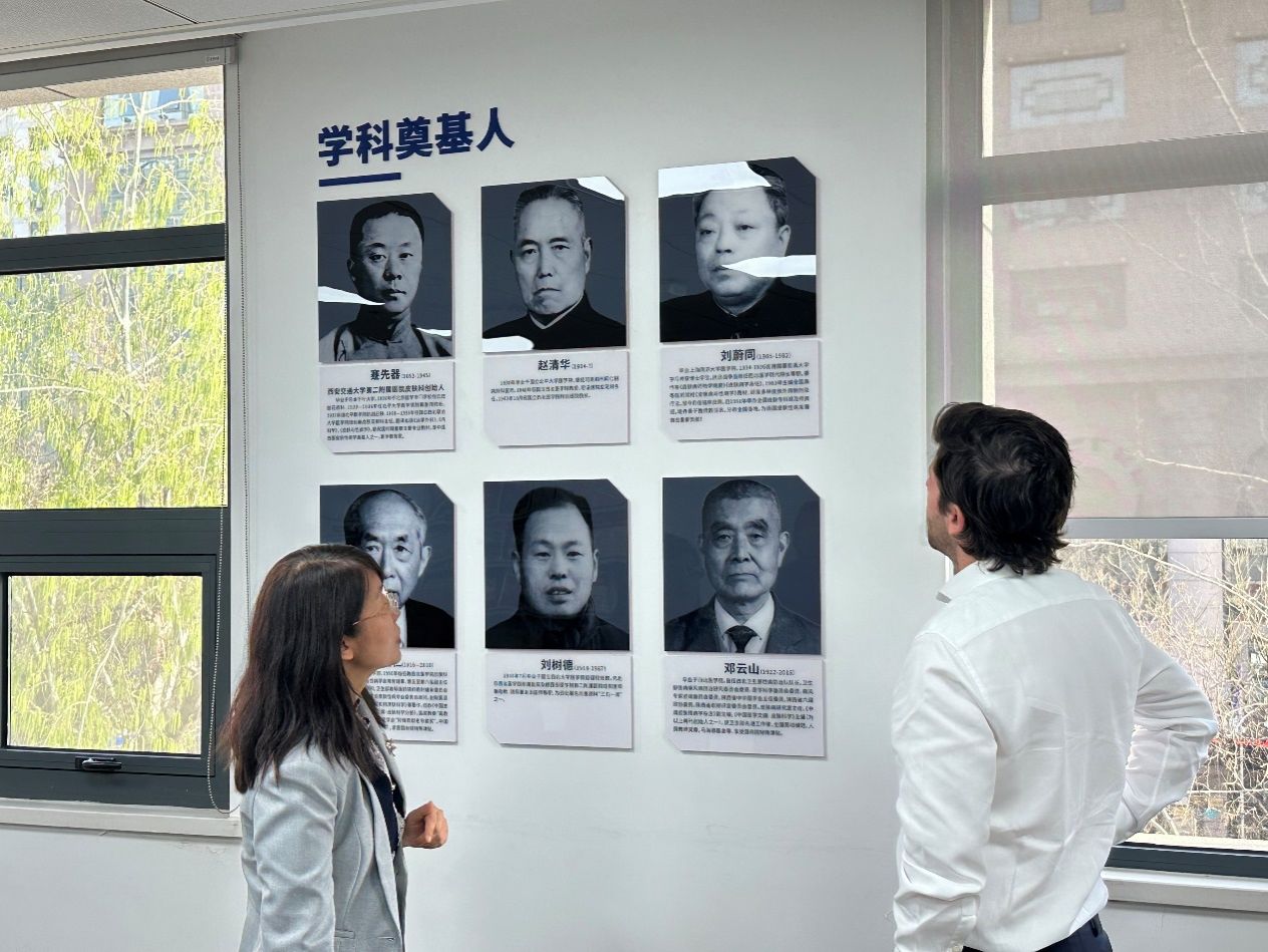 参观过程中,耿松梅主任在皮肤科示教室向Zink教授全面介绍了我院皮肤科的88年发展历程、曾留学德国慕尼黑的学科奠基人刘蔚同教授的卓越贡献,以及近年来学科在罕见疑难重症皮肤病方面的研究进展及学科影响力。Zink教授对科室深厚的学术积淀、临床科研一体化模式及医护团队的专业素养给予高度评价。