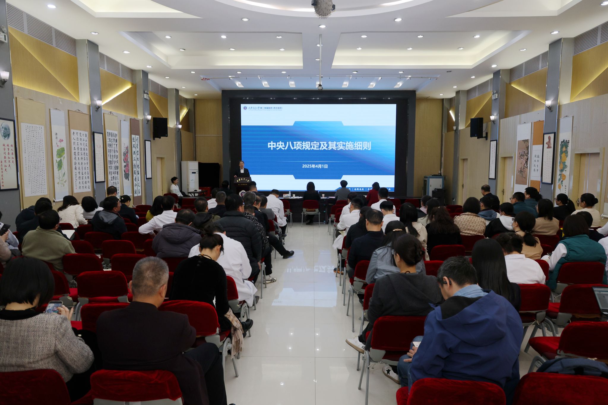 在中央八项规定精神的引领下和学校党委的统筹部署下,我院始终将贯彻落实中央八项规定精神作为重大政治任务,3月24日、31日,先后召开两次中央八项规定精神学习教育专题会议进行传达落实和动员部署,院领导、党委委员、管理职能部门负责人参加会议。近日并给院领导、党委委员、全体党支部(总支)书记统一购买了《习近平关于加强党的作风建设论述摘编》学习资料。院党委要求全体党员干部以高度的政治自觉和行动自觉推进作风建设,为守护人民健康、医院高质量发展注入清廉动能。