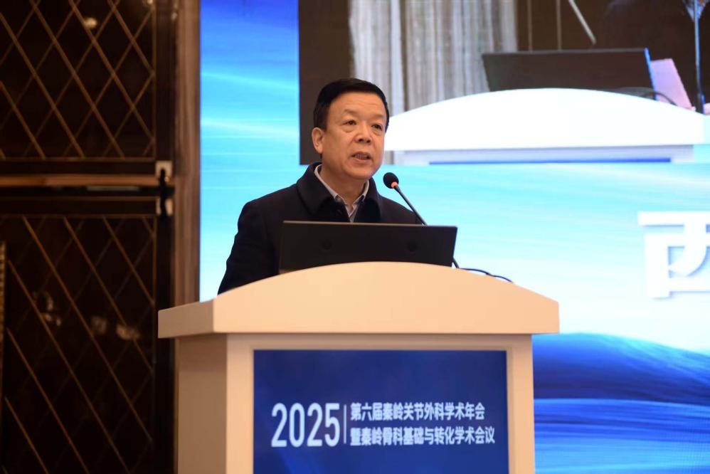 中华医学会骨科学分会候任主任委员、陕西省骨与关节学会会长、西安交通大学医学部关节外科中心主任王坤正教授代表大会组委会对各位的到来表示最热烈的欢迎和衷心的感谢。他提到秦岭关节外科学术年会历经六载耕耘,已成为我国西北地区骨科领域极具影响力的学术品牌。回顾我国关节外科的发展历程,从跟跑国际前沿到如今部分领域实现领跑,每一步都凝聚着骨科人的智慧与汗水。