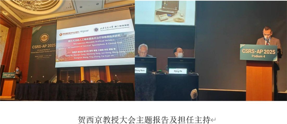 贺西京教授在会上表示:“CSRS-AP是连接亚太与世界的重要桥梁,我们非常荣幸能够代表中国,在这一学术平台上分享经验、展示成果,也非常期待在未来的合作中,共同推动颈椎外科技术的发展,造福更多患者。”
