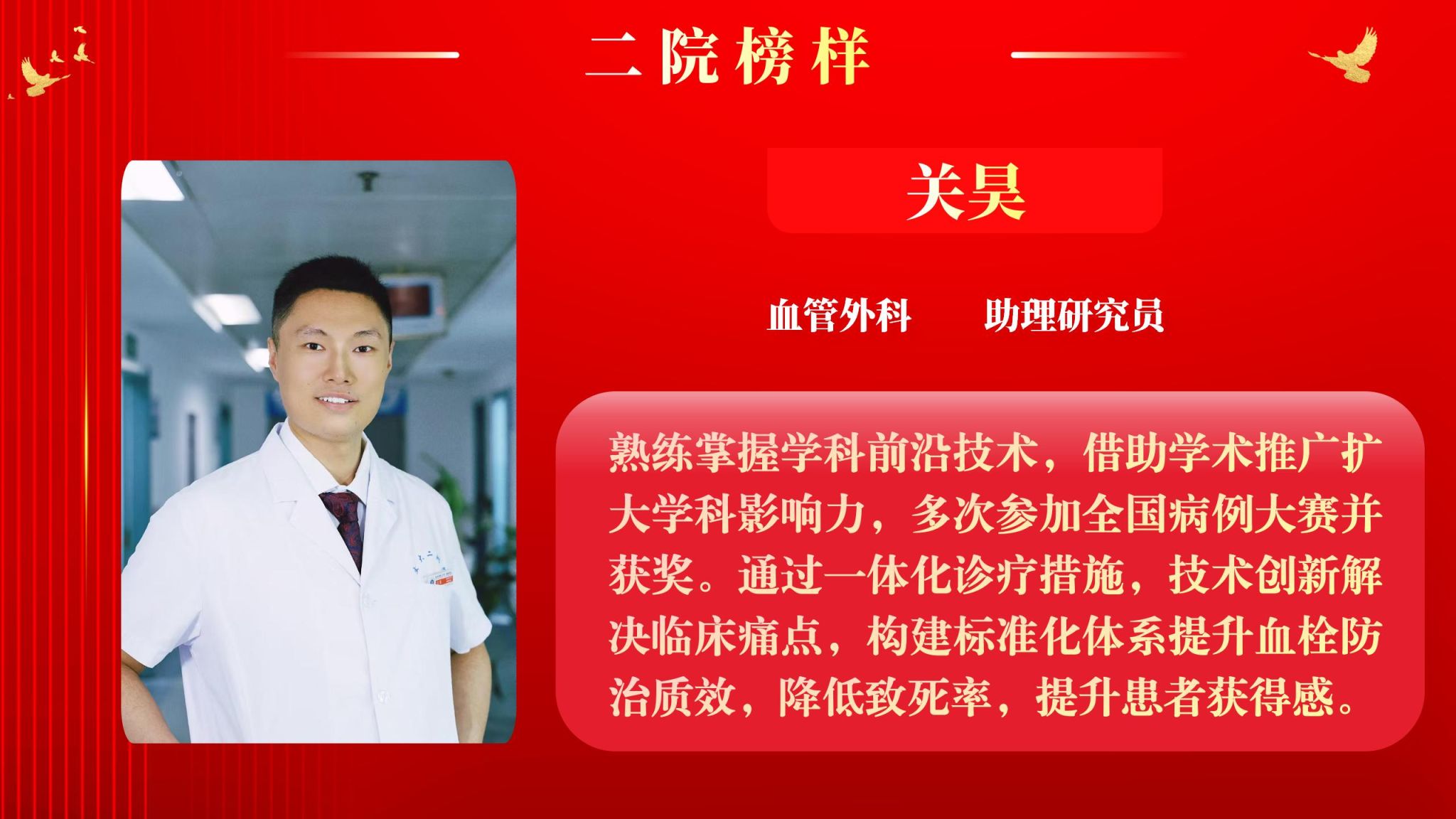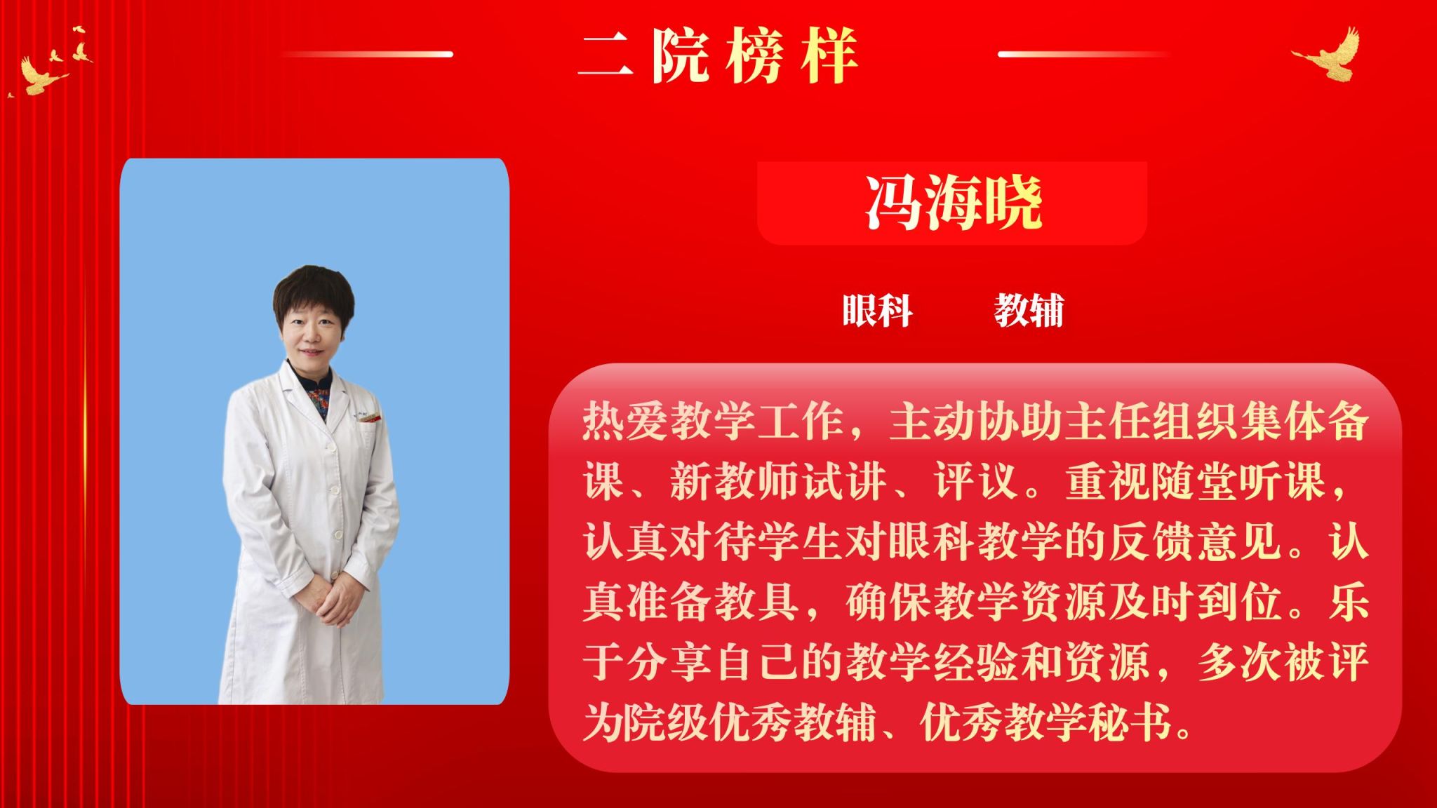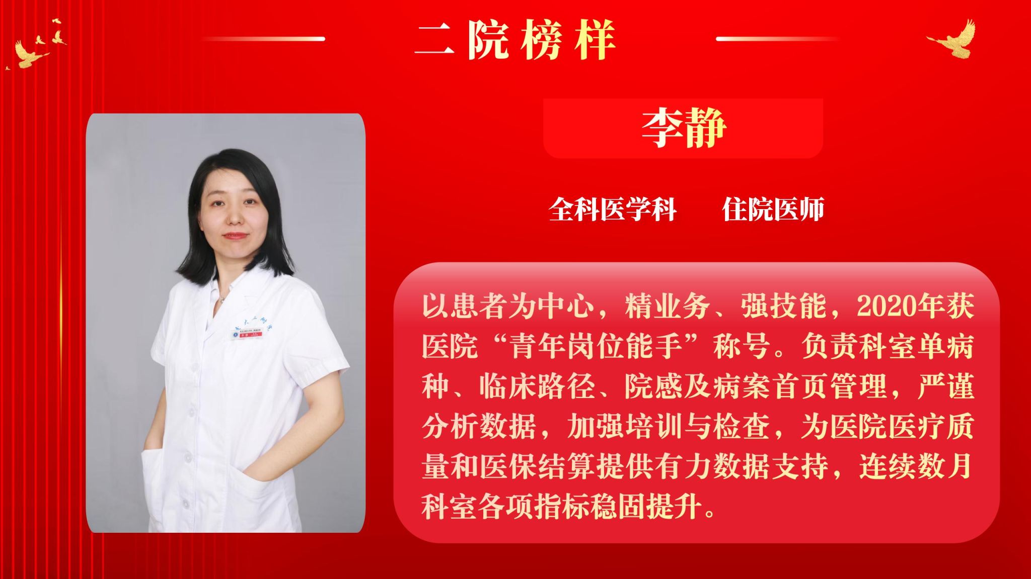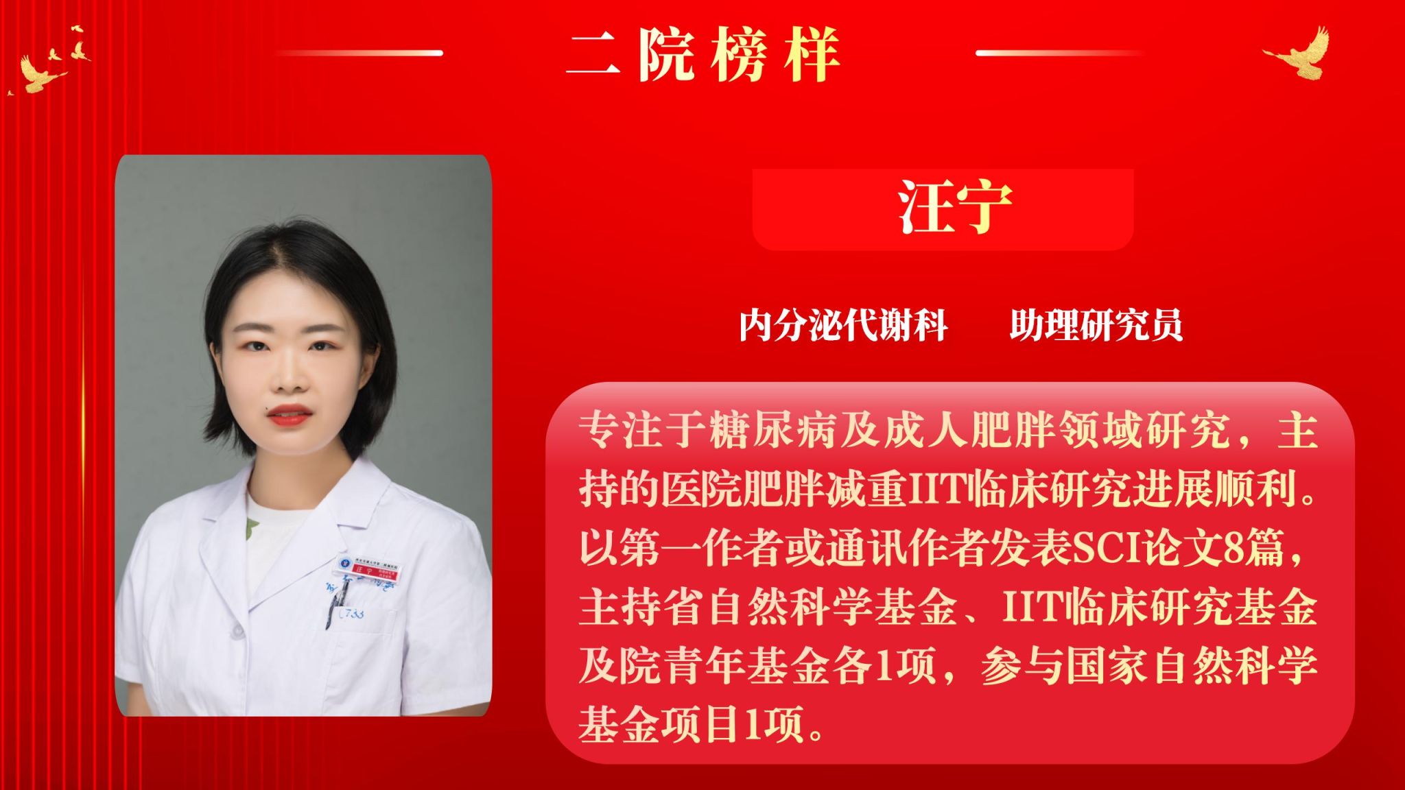 为营造全院将比学赶超融入实际工作,以奋发有为、积极进取的精神面貌迈向新征程,以“二院榜样”评选为契机,以榜样引领促进全面进步。4月7日下午,院工会在南院多功能厅举行了2025年“二院榜样”2月月度人物表彰大会,大会由党委副书记党变玲主持。