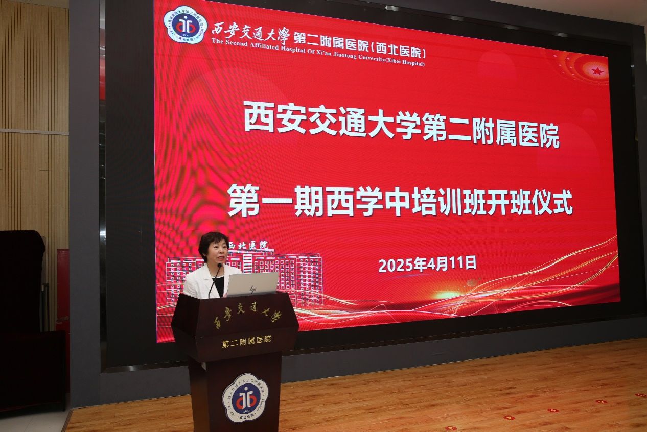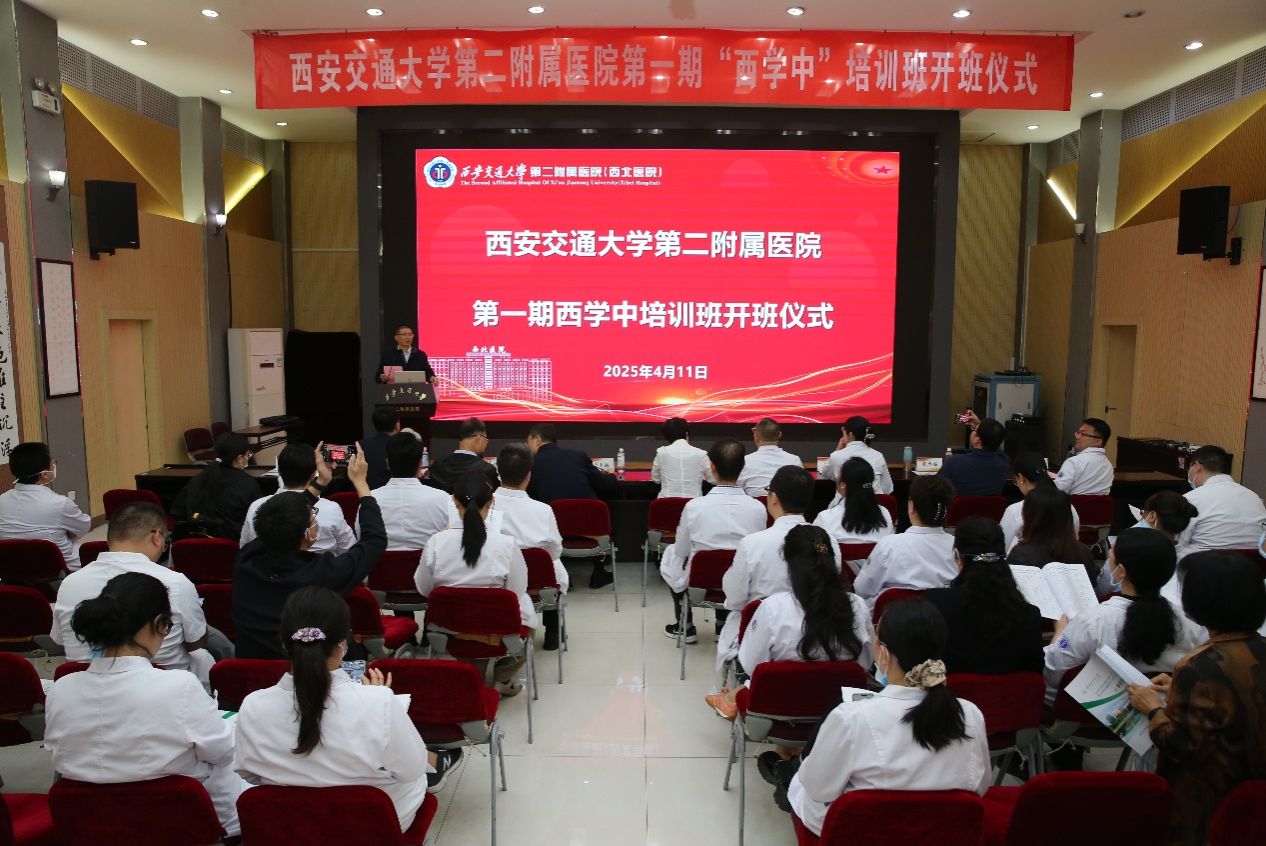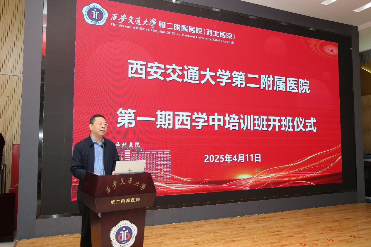4月11日,西安交通大学第二附属医院第一期“西学中”培训班开班仪式在医院多功能厅举行。陕西中医药大学继续教育学院党总支书记张小嵩、副院长孙建飞、陕西中医药大学培训中心主任杨忠瑶、陕西中医药大学资深教授张效科、我院党委副书记党变玲、中西医结合病院副院长吴喜利、中西医结合病院副院长刘艳、中医科副主任安鹏出席会议。会议由学科办主任纪泛扑主持。