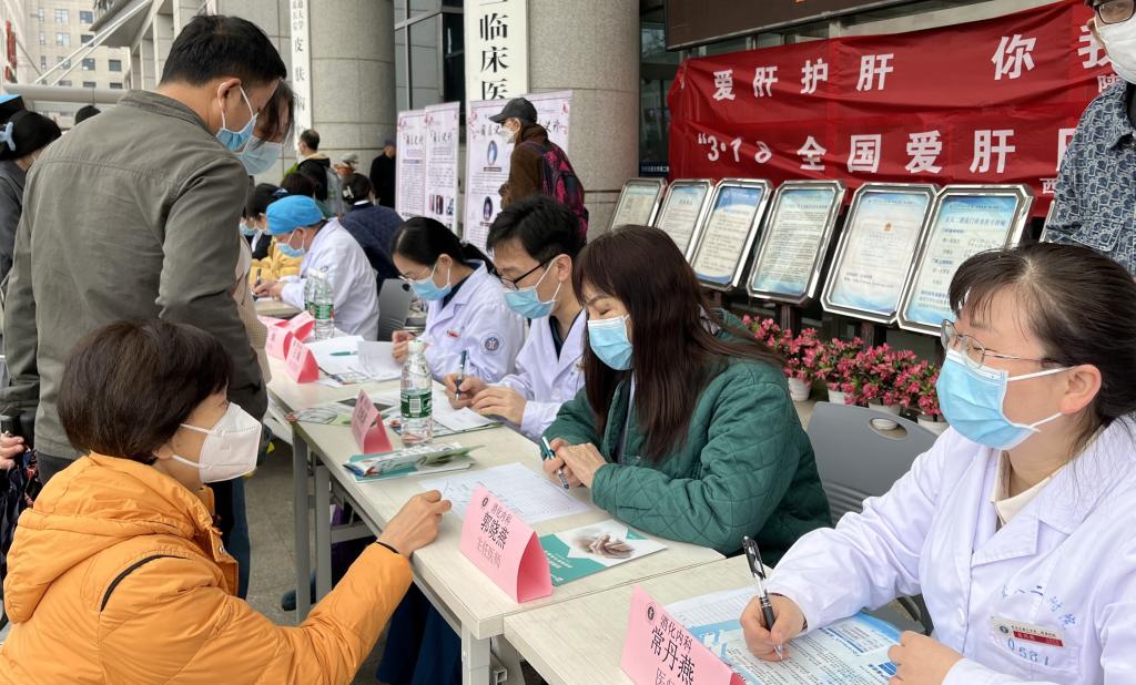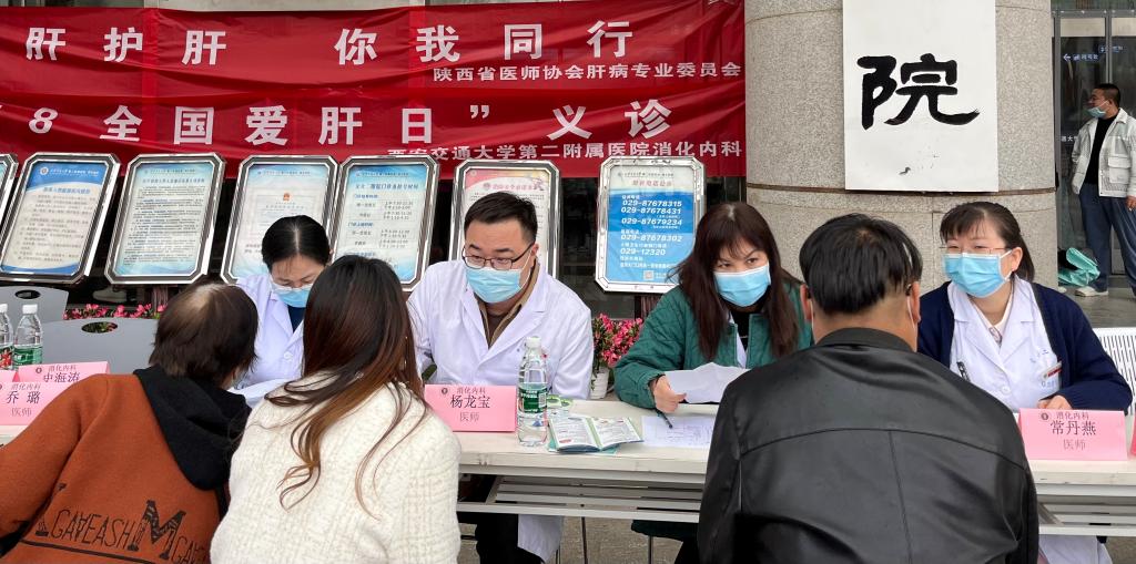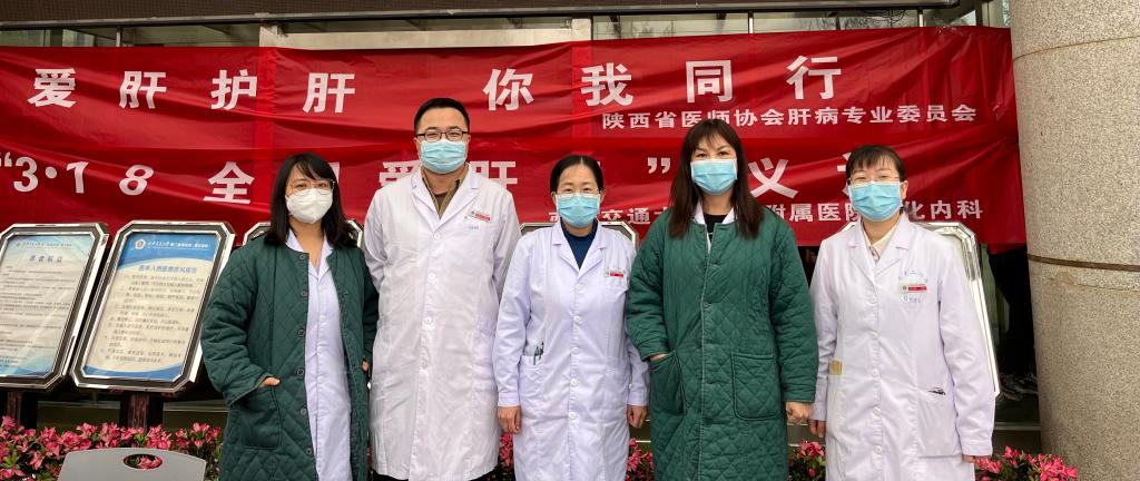 3月18日是我国第23个“全国爱肝日”,本次爱肝日的宣传主题为“主动检测、扩大治疗、消除乙肝危害”,全国爱肝日的设立,旨在号召广大民众,重视肝病,爱肝护肝,保障民众身体健康。为助力我国肝病防治工作,惠及广大肝病患者,提高社会大众对肝病的防治意识。由陕西省医师协会肝病专业委员会主任委员、消化内科副主任郭晓燕教授带领消化内科肝病团队在我院综合楼门前开展了“爱肝护肝、你我同行”为主题的义诊宣传活动。参加义诊活动的有郭晓燕教授、史海涛副教授、李红副教授、王璐副教授、杨龙宝博士、王楚莹博士、常丹燕主管护师等。