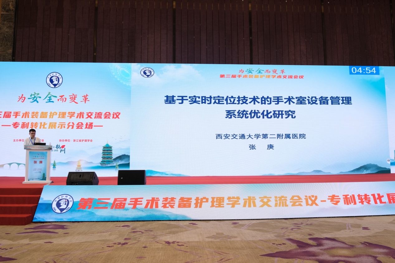 在专利转化分会场,我院手术室护士张庚受邀作《基于实时定位技术的手术室设备管理系统优化研究》专题报告。该报告结合我院手术室在装备管理与护理实践中的典型案例,分享了团队在共享设备智能调配、手术流程效率提升、围术期安全保障、医疗信息化建设等维度的经验与成果。张庚的发言内容紧扣大会主题,既有理论深度,又具实践指导意义,赢得了现场众多同行的赞许。在交流互动环节,团队还就手术装备标准化管理、跨院区资源整合等共性难题,与其他参会单位深入探讨,通过主动学习前沿理念进一步拓展技术转化思路。