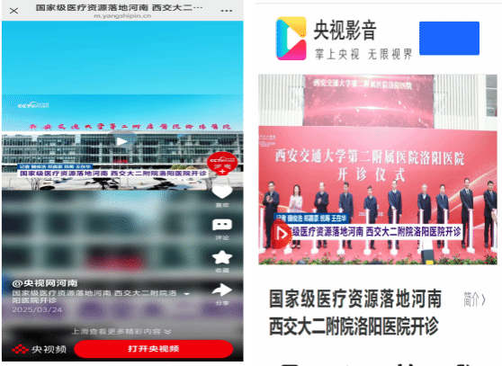 图16 西交大二附院洛阳医院开诊央视网河南及央视影音等媒体报道