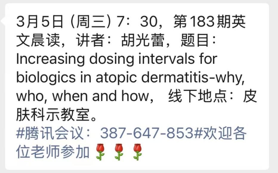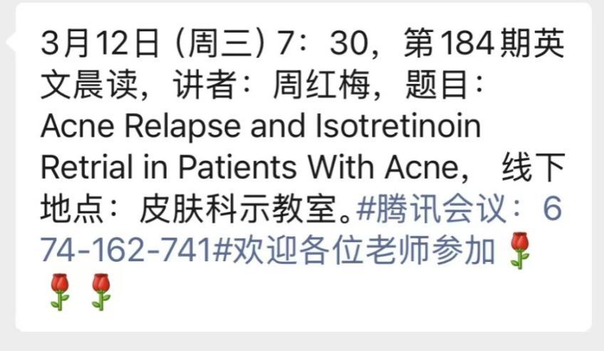 开展业务学习。西交大二附院皮肤科专家王媛每周开展科室内线下学习,开展“玫瑰痤疮诊断与治疗”讲解学习,提升科室团队对玫瑰痤疮疾病的诊疗水平,为患者提供更加专业、高效的医疗服务。