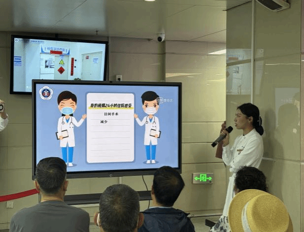 本期大讲堂首设日间手术认知提升单元,由日间手术中心袁晔护师通过一段视频展示了日间手术中心的日常工作,让患者朋友们对日间手术有了初步的了解。随后,详细介绍了日间手术的概念、优势以及适用病种。日间手术(Ambulatory Surgery)是指患者在24小时内完成从入院、手术到出院的全流程医疗服务模式。它打破了传统手术需多日住院的局限,通过精准评估、微创技术及智能随访,实现“短时高效、安全便捷”的治疗目标。日间手术具有时间短、费用低、恢复快等显著优势,适用于多种常见手术,例如普外科的腹腔镜下胆囊切除术、甲状腺切除术、疝气修补术,儿科的包皮环切术、体表肿物切除、多指矫正,以及耳鼻喉科的扁桃体/腺样体切除、内镜下鼻病损切除术等。除此之外,袁护士还耐心解答了患者关于日间手术的疑问,并介绍了预约流程和注意事项。