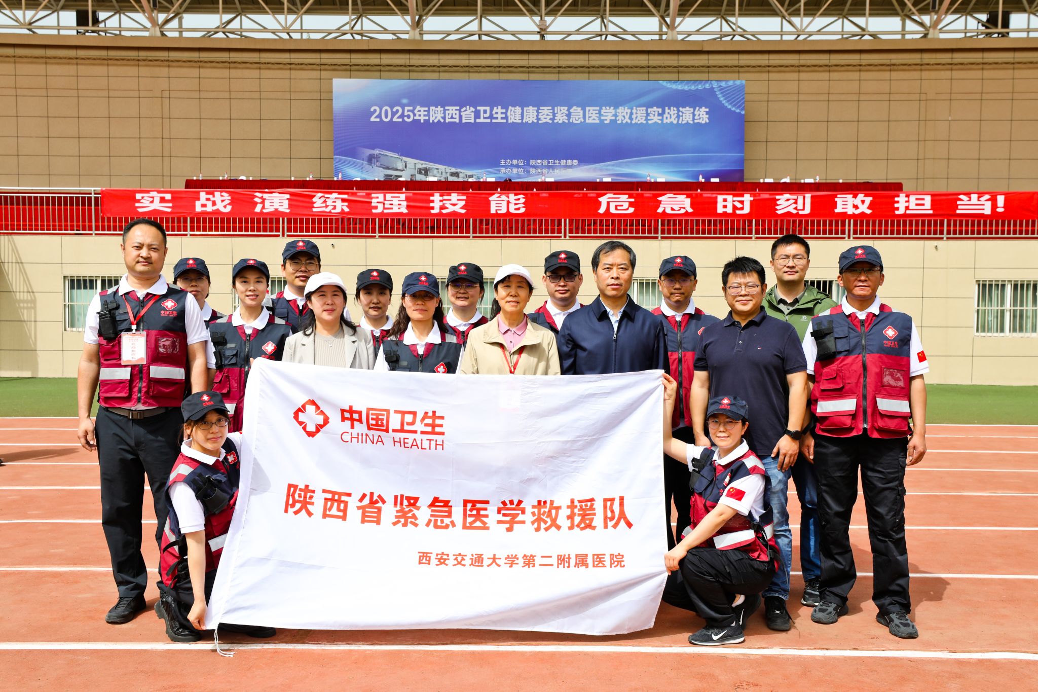 为提高我省应对重大突发事件的紧急医学救援能力,切实保障人民群众生命安全和身体健康,陕西省卫生健康委组织八支紧急医学救援队开展实战演练。本次演练以“贴近实战、突出协同、强化能力”为原则,模拟陕西省某地发生重大自然灾害后的应急救援场景,重点演练伤员批量转运、现场救治、院前急救等环节,涵盖指挥调度、检伤分类、创伤急救、危重症处置等关键内容,全面检验救援队伍的快速响应和协同处置能力。作为省内紧急医学救援的骨干力量,我院救援队全程参与演练并圆满完成各项任务,充分展现了过硬的业务素质与高效的团队协作能力。