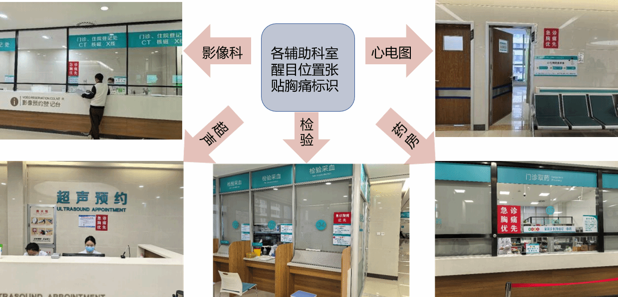 胸痛中心建设期间,我院先后与西安市120急救指挥中心、省内地区、县域等基层医院签署胸痛患者联合救治协议,目前已签署网络医院20余家。在医院领导的大力支持下整合院内:急诊科、心内科、心外科、影像科、检验科、后勤管理等多部门资源,打造院前急救与院内救治的无缝衔接流程,实现"患者未到、信息先达"的智慧化预警机制及先救治后收费的急救理念。为了使胸痛患者快速得到诊治,院内外胸痛指引标识规范醒目,指引明确,做到了目之所及皆有标识,标识之处皆有指引。真正践行了建设胸痛中心的意义:即通过多学科、多部门、多单位合作,优化流程为胸痛患者提供快速而准确的诊断、危险评估和恰当的治疗手段,从而提高胸痛患者早期诊断和治疗能力,减少了误诊和漏诊,缩短胸痛患者的救治时间,降低胸痛患者的死亡率、改善患者临床预后。