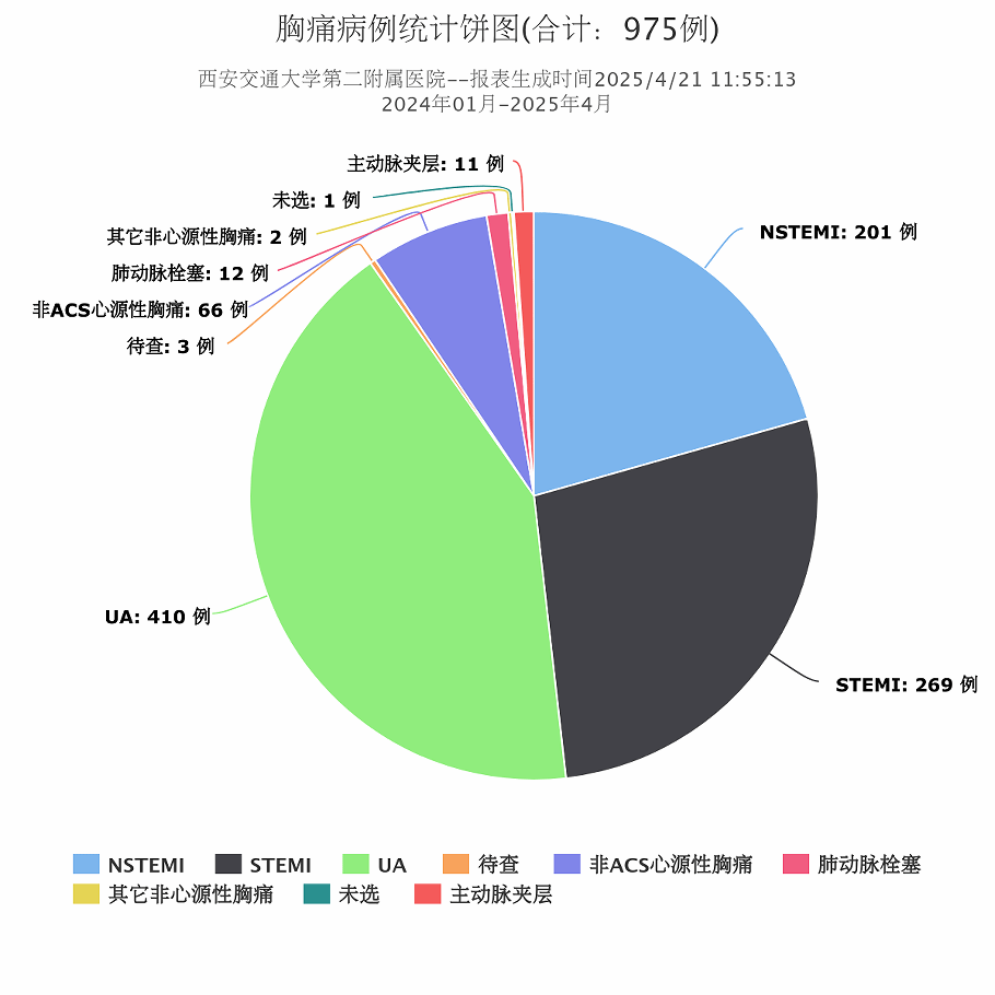 2023年8月我院重启胸痛中心建设以来,刘昌书记、张蓬勃院长、刘明副院长、戴一副院长的领导下、医务部王虎清常务副主任、寇惠娟副主任的指导下、医疗总监邓捷主任的统筹带领下,以胸痛中心协调员蒋伟副主任为中心的的心内科和急诊科团队以"时间就是心肌,时间就是生命"为准则,构建多学科协作救治体系。团队成员在400多天的日夜奋战中,先后完成制度流程优化50余项、开展模拟演练20余场、组织基层培训30余次,院内培训20余次;举办联合例会、质量分析会、典型病例讨论会10余次,胸痛中心数据填报由最初每月20余例上升至现今100余例,目前已经上报1300余例(2023年8月至2025年4月),疾病涵盖急性冠脉综合征、肺栓塞、主动脉夹层、低危胸痛等患者,关键数据质量均已达标。