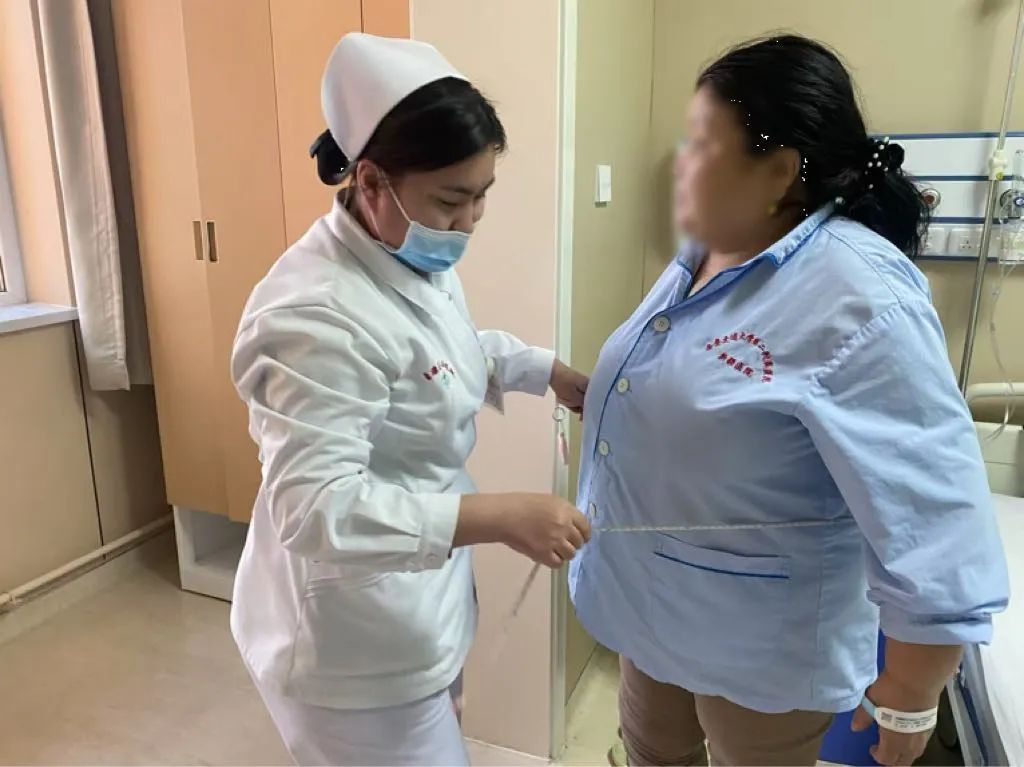 近日,一位61岁女士,肥胖已经影响她20余年,身高156cm,体重97公斤,体重指数(BMI)高达39.9,属于重度肥胖,伴有代谢综合征、高血压、冠心病和高脂血症等多种基础性疾病。多年来,她尝试过多种减重方法,效果不佳,慕名前来新疆医院寻求帮助。新疆医院胸外科团队首先检测激素水平,排除了激素性肥胖的可能性,通过专项检查,明确了肥胖的原因、内脏脂肪分布情况及胃部健康状况,专家团队综合评估,决定行袖状胃切除术。胸外科护理团队进行术前呼吸训练、一对一的心理疏导,营养科设计了低热量、高蛋白的术前饮食方案,减轻患者肝脏体积,降低手术风险。努尔兰主任与驻疆专家马震川共同协作,成功实施了胃减容手术。术后,护理团队制定了详细的康复计划,营养科专家逐步调整饮食方案,确保营养摄入均衡。