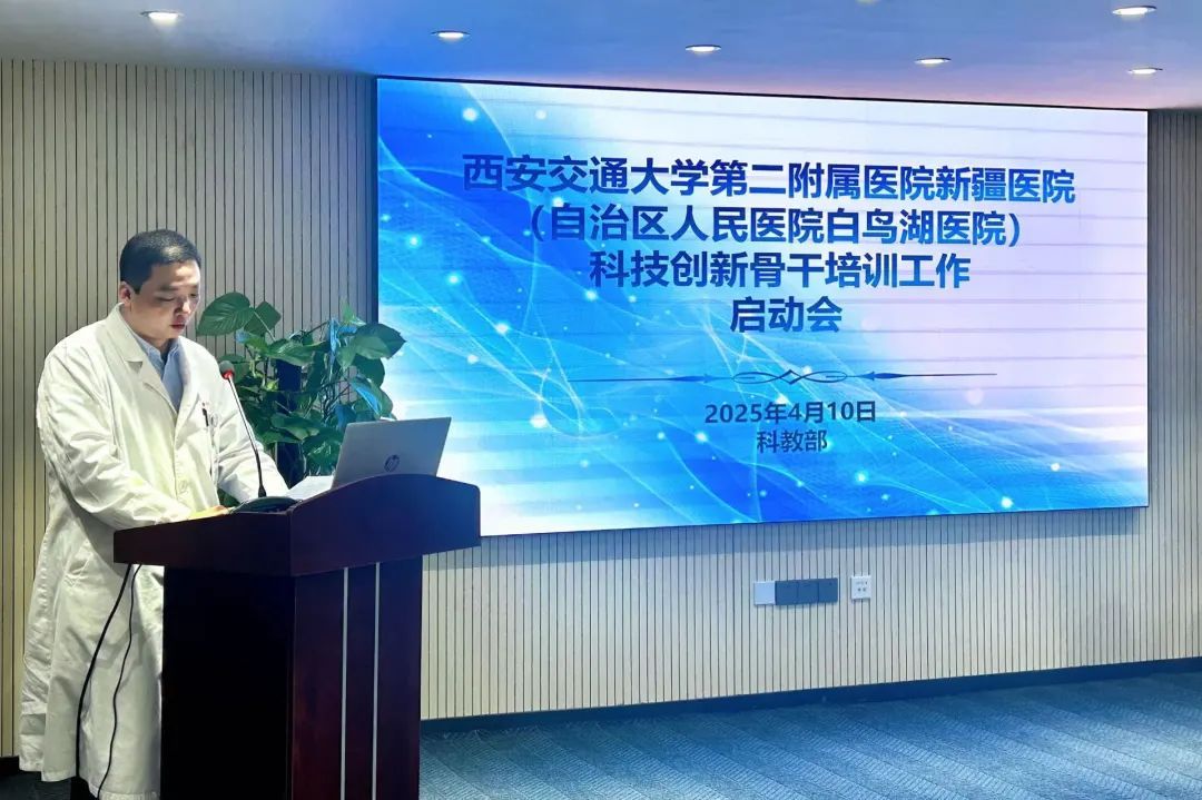 4月10日,西安交通大学第二附属医院新疆医院(自治区人民医院白鸟湖医院)召开科技创新骨干培养工作启动会,旨在精准施教提升年轻医师的创新意识和科研素养。