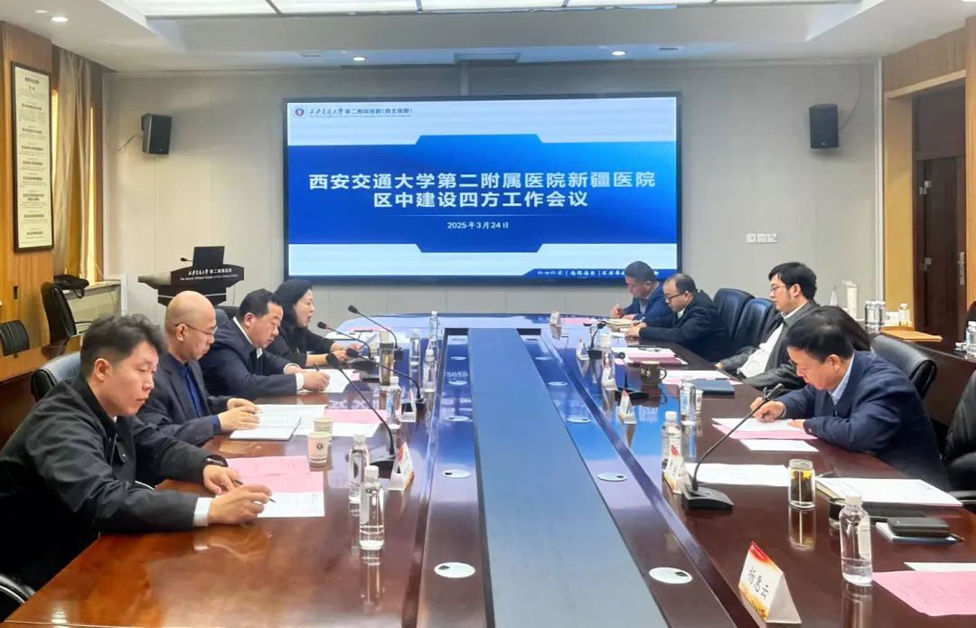 近日,新疆维吾尔自治区卫生健康委党组成员,自治区人民医院党委书记、副院长冯东率领西安交通大学第二附属医院新疆医院(自治区人民医院白鸟湖医院)党委书记、副院长杨玉清,党委委员、副院长赵朝虎赴西安交通大学第二附属医院参加国家呼吸区域医疗中心建设四方联席会议。西安交通大学第二附属医院党委书记刘昌、院长张蓬勃、副院长种铁及相关职能部门负责人参会,会议由副院长戴一主持。