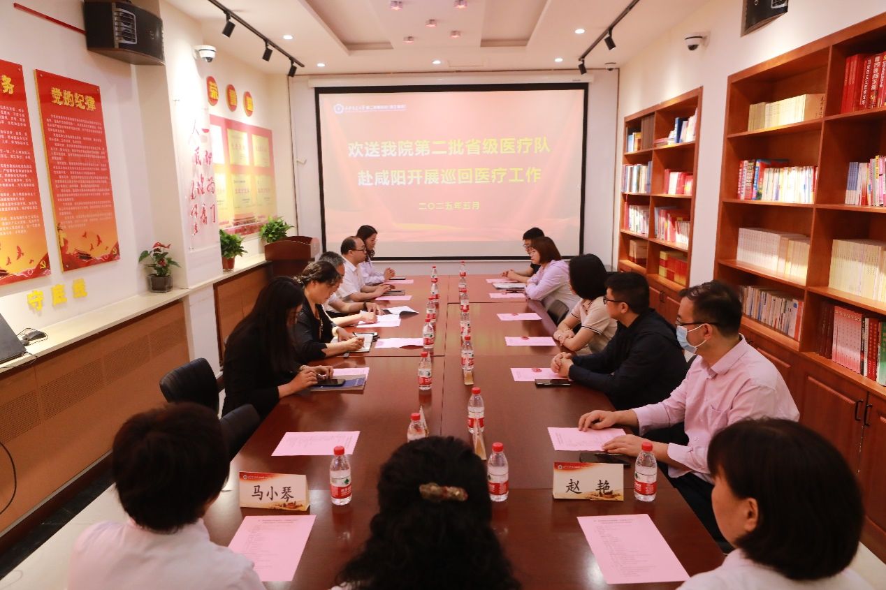 为全面落实陕西省卫生健康委关于巡回医疗工作的部署要求,深入践行“健康中国2030”战略,持续推进优质医疗资源下沉,在院领导统筹部署及各部门通力协作下,由小儿外科副主任医师龚伟带队,肾病科陈钊副主任医师、妇产科陈茜副主任医师、运动医学与小儿骨科倪建龙副主任医师、神经内科任宏伟主治医师组成的专家团队,于5月6日启程赴咸阳市开展为期三周的巡回医疗工作。