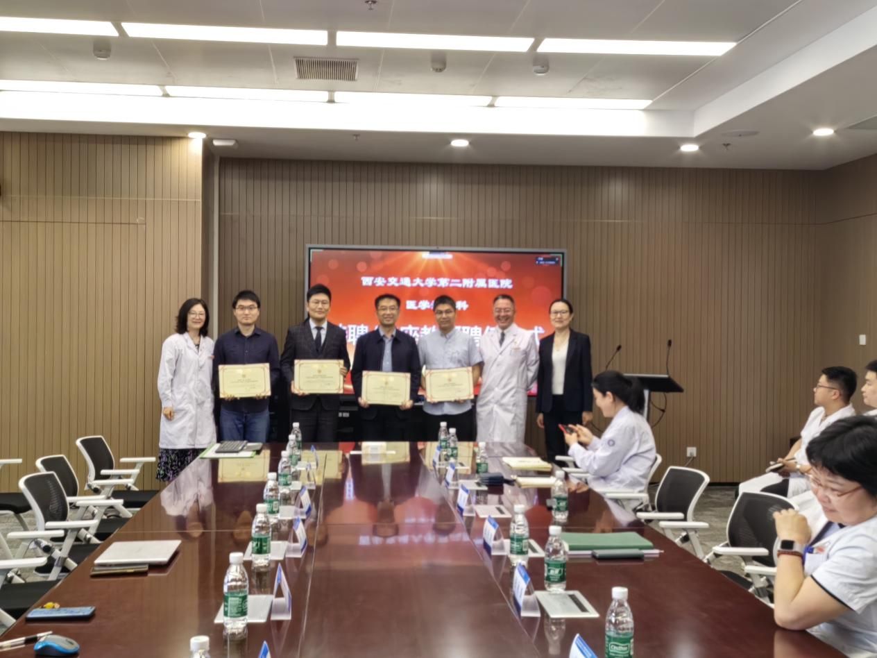接着,刘明副院长同张月浪主任代表医院依次为到现场参会的贺小伟、崔龙彪、薛尧、沈明望教授颁发“西安交通大学第二附属医院特聘/客座教授”证书,正式聘任其为医学影像科特聘/客座教授教授。