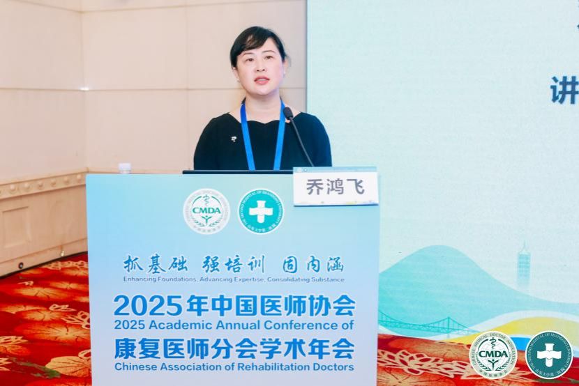在大会学术活动中,张巧俊教授作为言语及吞咽康复会场主席,为会议致辞并主持相关学术交流。乔鸿飞教授在神经康复会场作题为《基于近红外脑功能成像的经颅直流电刺激联合下肢康复机器人训练对脑卒中患者下肢运动功能的影响》的专题报告,分享了前沿研究成果。惠艳娉教授在言语及吞咽康复会场发表《基于fNIRs的iTBS联合食物视觉刺激在脑干卒中患者吞咽功能康复中的应用》的学术演讲,为吞咽障碍康复提供了新思路。