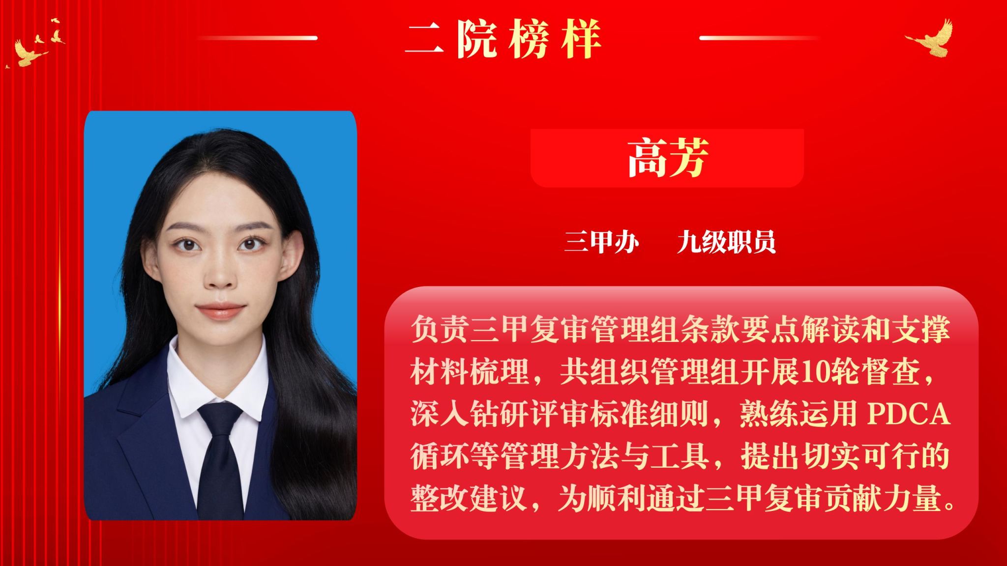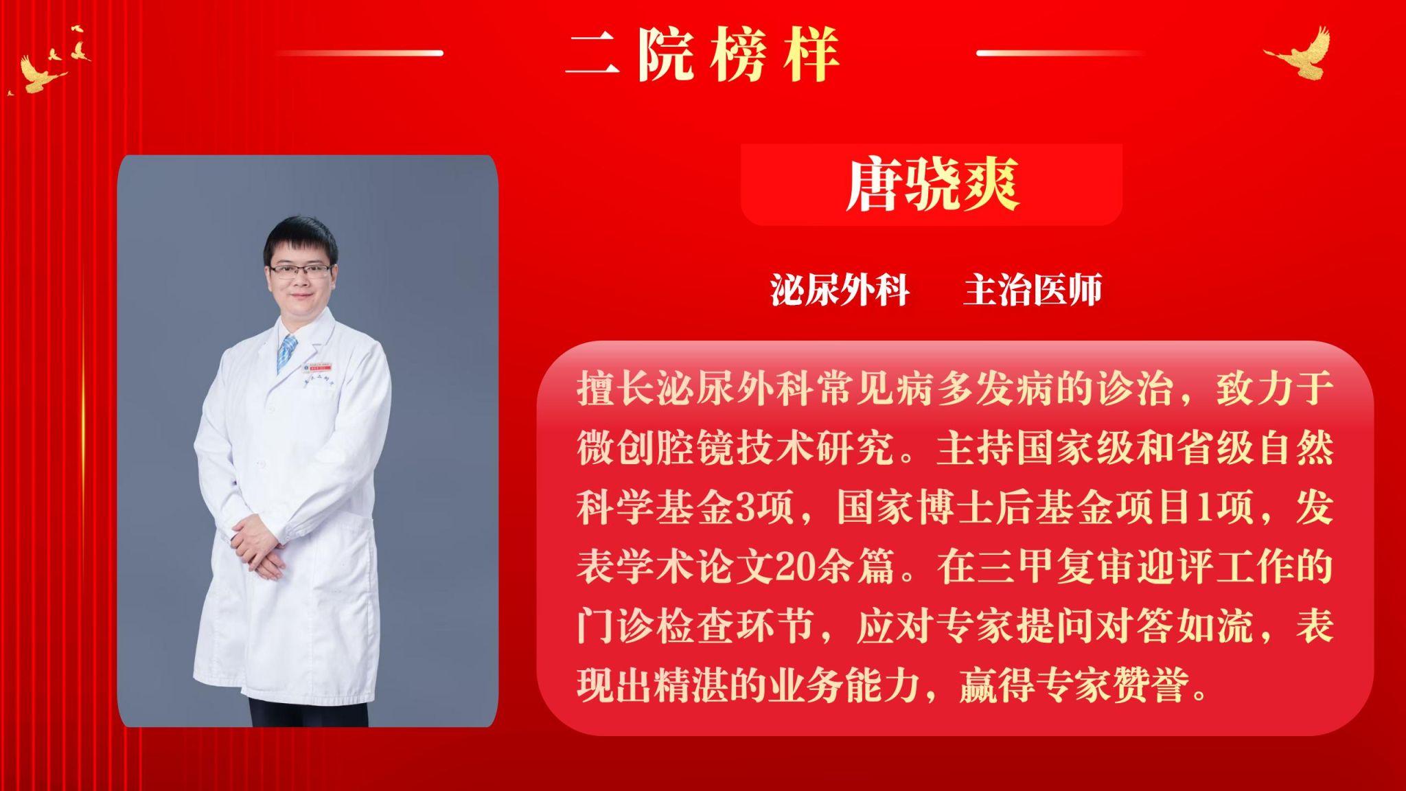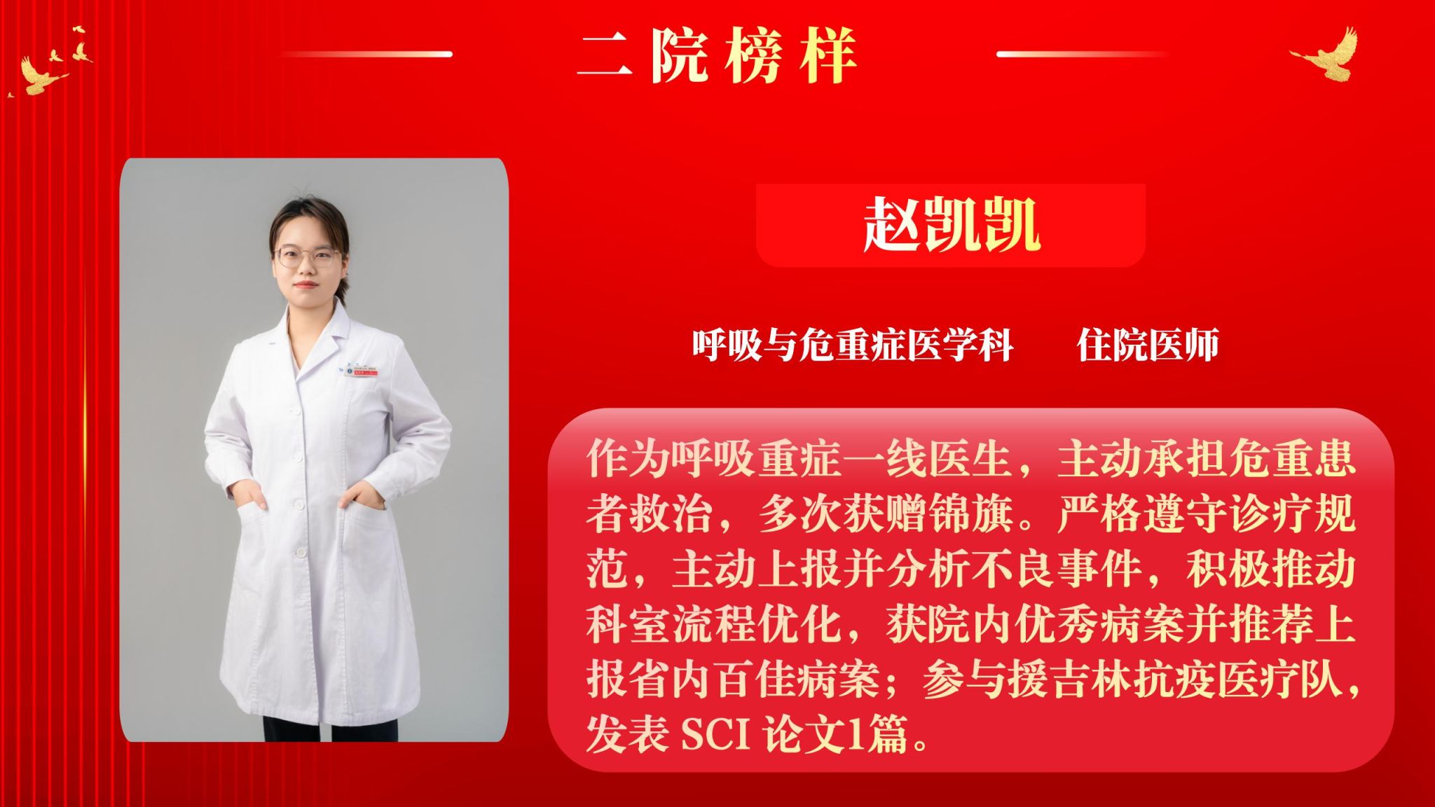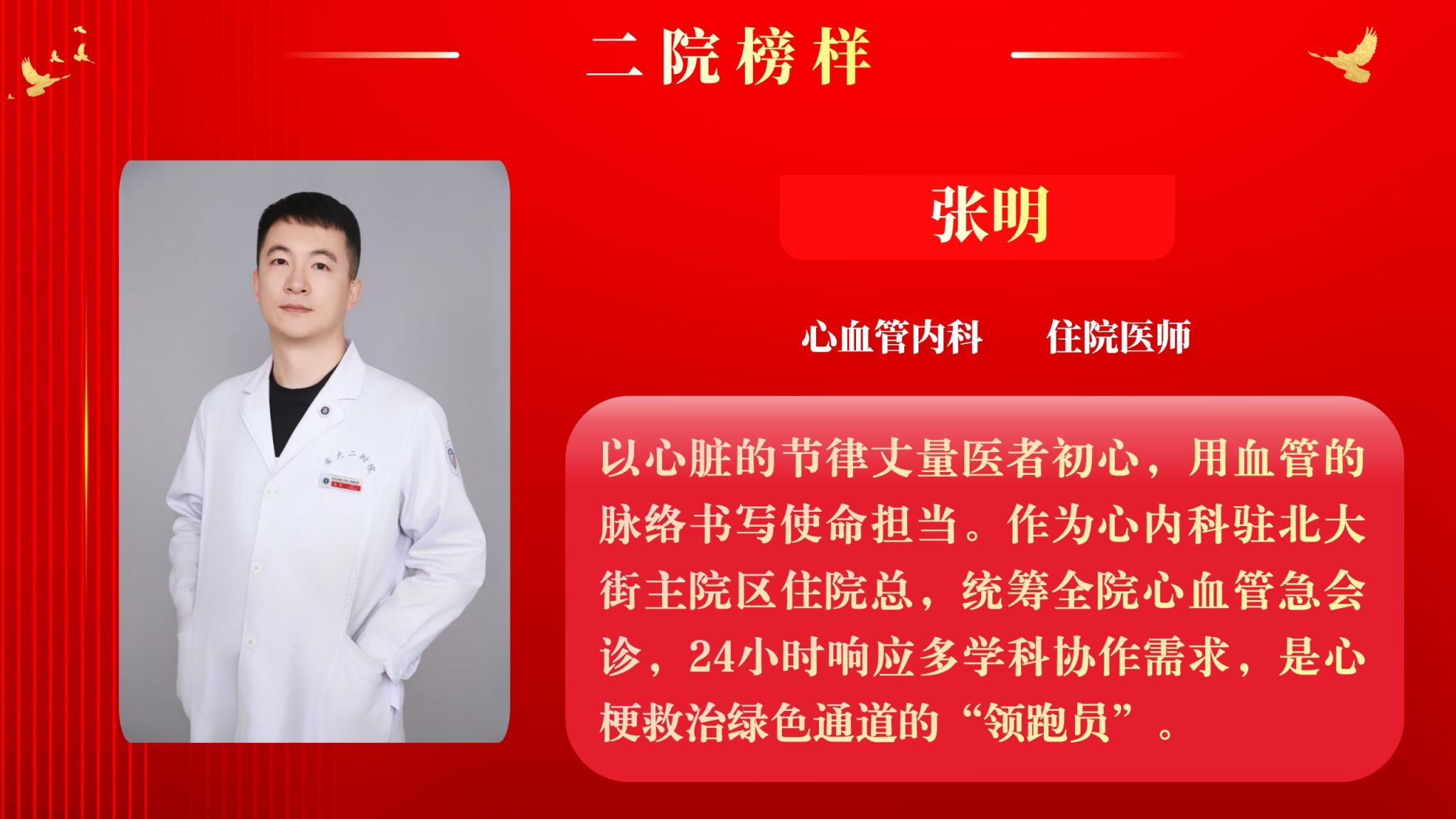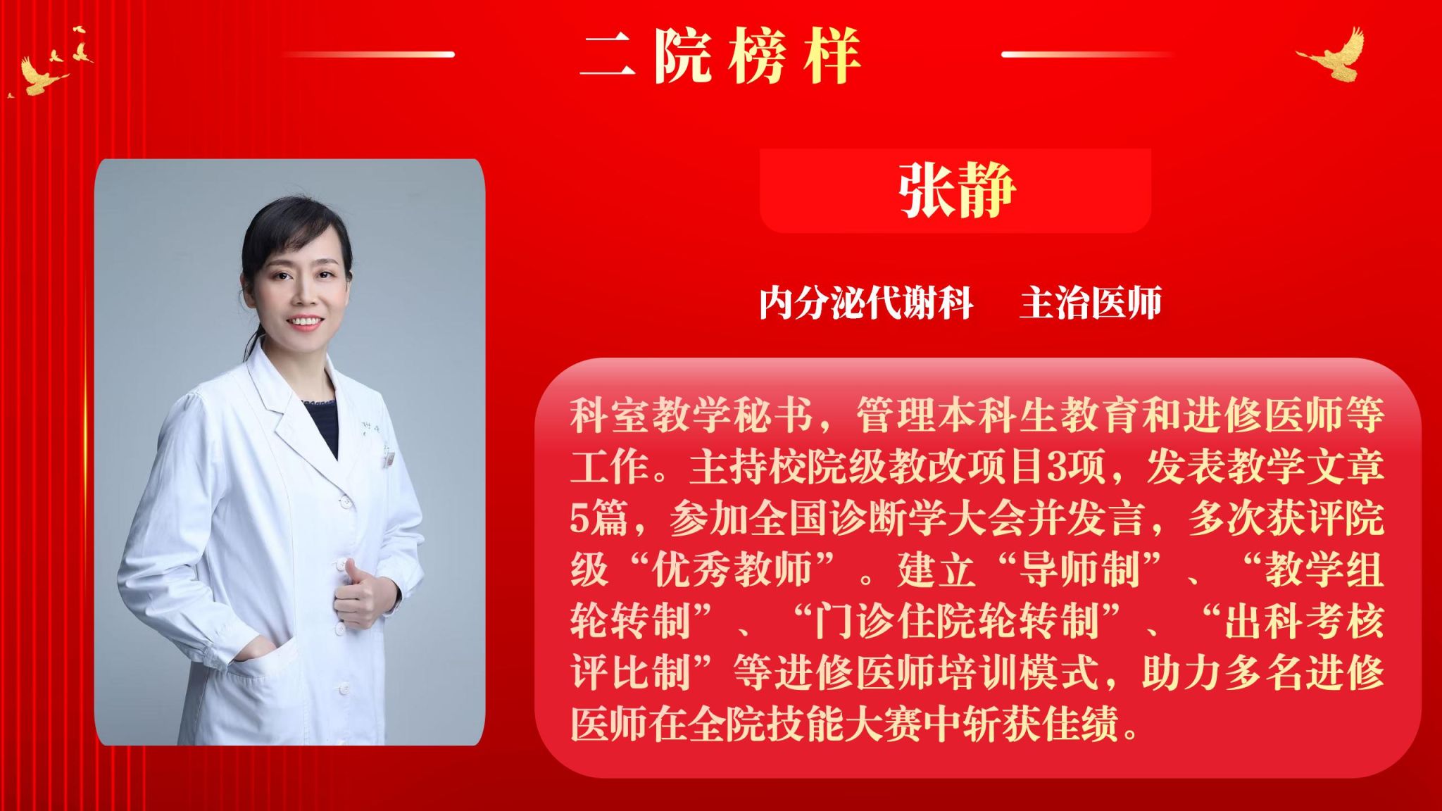 为营造全院将比学赶超融入实际工作,以奋发有为、积极进取的精神面貌迈向新征程,以“二院榜样”评选为契机,以榜样引领促进全面进步。5月12日下午,院工会在南院多功能厅举行了2025年“二院榜样”3月月度人物表彰大会,大会由党委副书记党变玲主持。