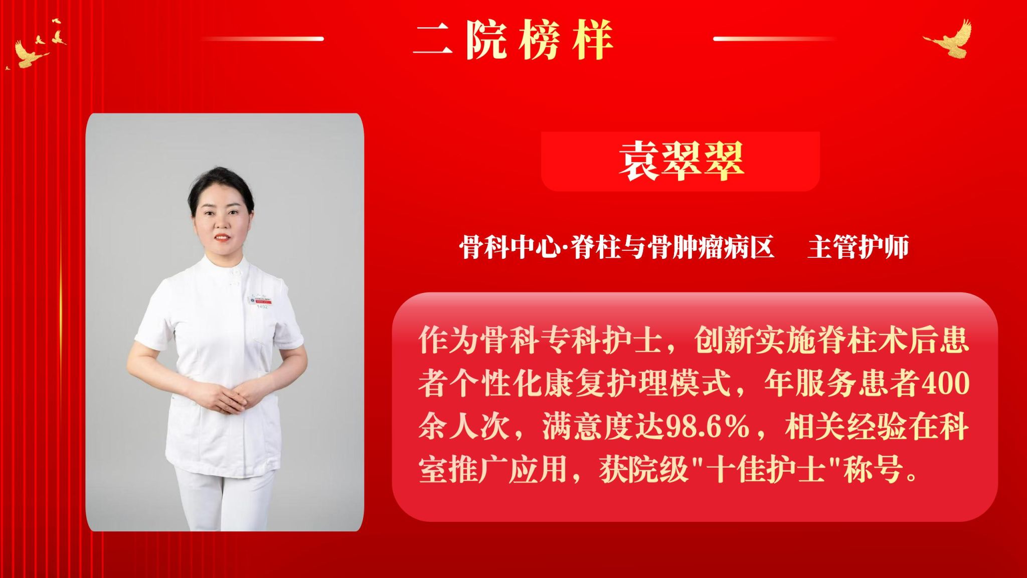 “二院榜样”评选是二附院大力传承弘扬医院优良传统,全面推进医院建设高质量发展的实际举措,通过表彰先进,激励广大教职员工学先进、赶先进、当先进,凝聚奋发兴院的强大动力。