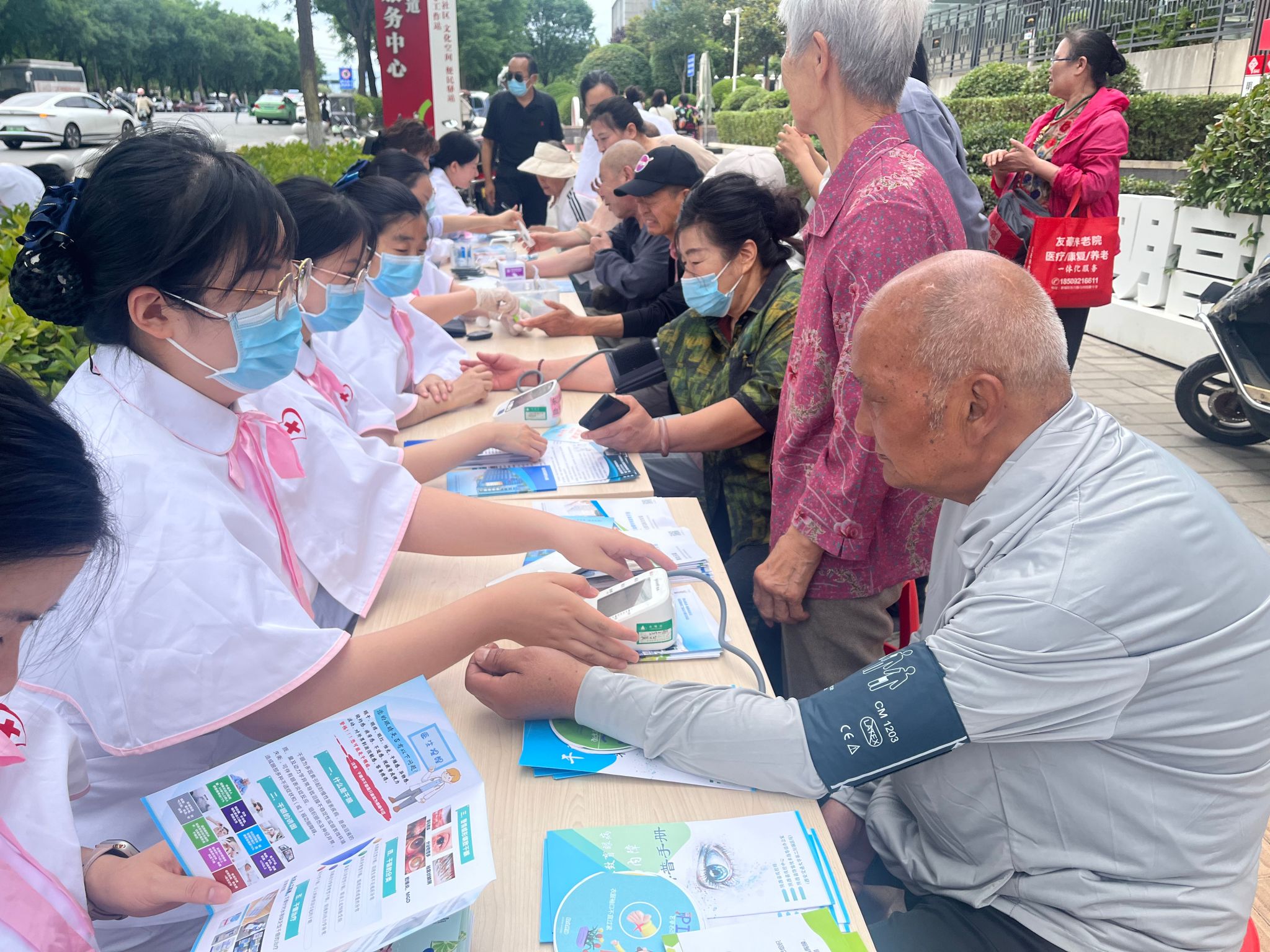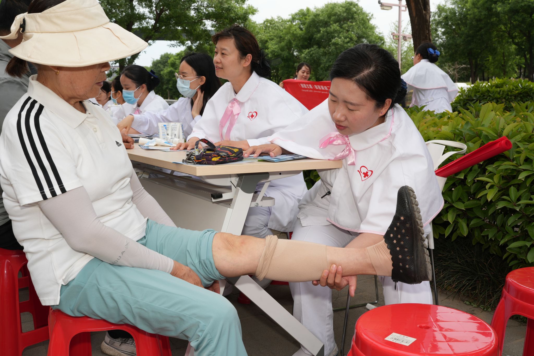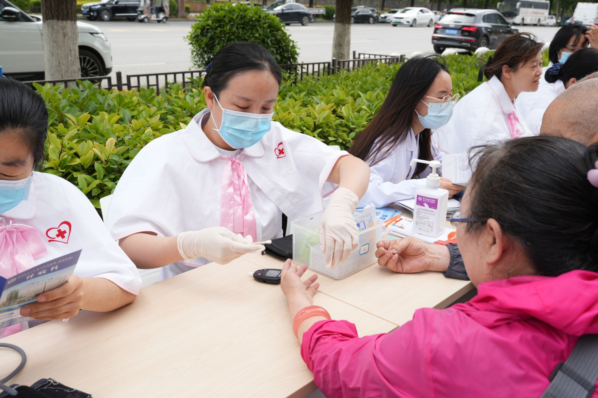 科普讲座结束后,义诊活动随即展开。来自内分泌科、心内科、眼科、妇产科、耳鼻喉科、胸外科、康复科、肾病科、血液科、神经外科、感染科、放疗科等多个科室的医护人员积极参与,为社区居民提供了全面的健康服务。内分泌科护理人员为居民测量血糖,耐心解答糖尿病相关问题;心内科护理人员测量血压,并提供心血管疾病预防建议;皮肤科医护人员为患者进行皮肤健康查体并指导日常皮肤护理,眼科护理人员为具名普及眼部保健知识;妇产科医护人员则为女性居民讲解妇科常见疾病预防和保健知识。此外,耳鼻喉科、胸外科、康复科、肾病科、血液科、感染科等科室的医护人员也根据自身专业特点,为居民们提供了针对性的健康咨询和指导。义诊现场还设置了急救技能演示区,医护人员通过模拟人向居民们展示了心肺复苏的正确操作方法,居民们积极参与互动,学习急救技能,现场气氛热烈。