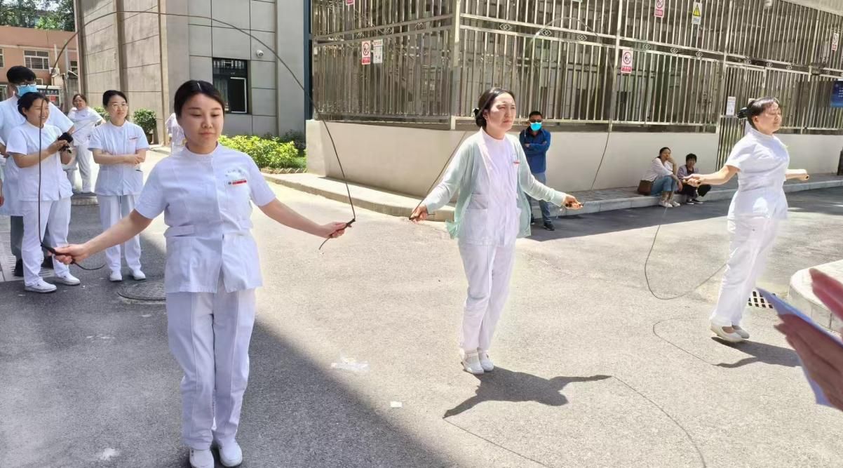 减脂可不只是“管住嘴”,迈开腿同样关键。减脂餐竞赛结束后,门诊部王丽娟主任又带领门诊部同仁来到儿科楼门前进行了轻松减压的跳绳、踢毽子等活动。跳绳堪称“燃脂界王者”,别看它简单易上手,运动效果却十分惊人。相较于慢跑,同等时间内,跳绳消耗的热量更高,短短10分钟跳绳的运动量,相当于慢跑半小时。