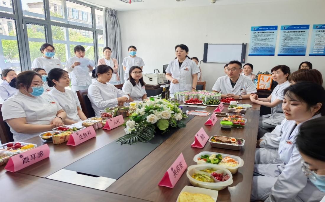 5月13日活动现场洋溢着热烈而欢快的氛围,来自门诊部各区域的9支参赛队伍以创意减脂餐为媒介,在营养科李菁专家的指导下,进行了一场"美食与健康"的深度对话 。