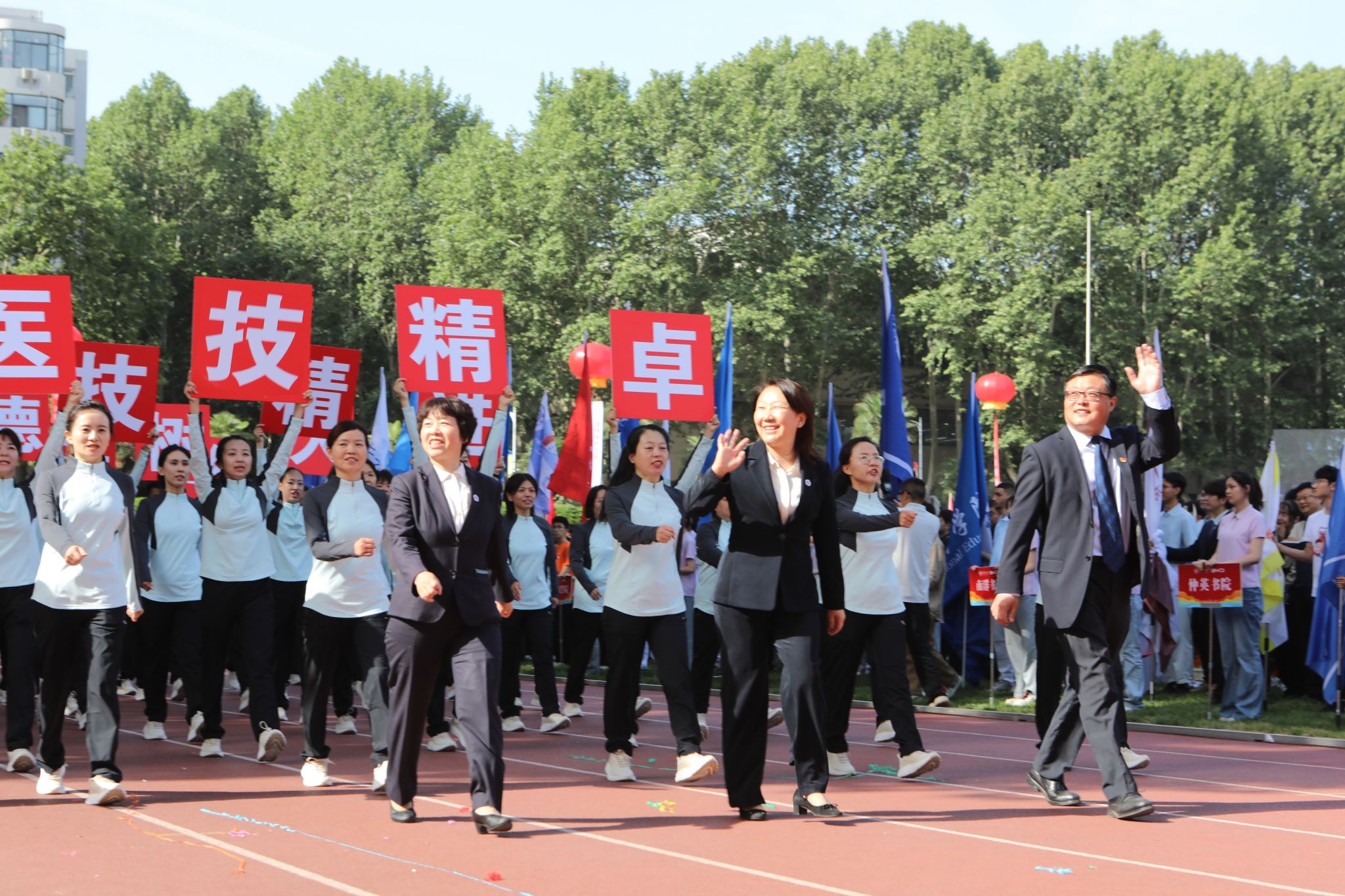 开幕式现场,碧空如洗,彩旗飘扬。《运动员进行曲》激昂奏响,点燃全场热情。国旗、校旗与校运会会旗依次入场,引领各学院方阵有序前行。我院运动员方队在医院党委书记刘昌、党委副书记党变玲、工会主席陈海文的带领下,迈着铿锵有力的步伐,意气风发地走过主席台。他们目光坚定、身姿挺拔,尽显二附院人锐意进取、奋发向上的精神风貌。