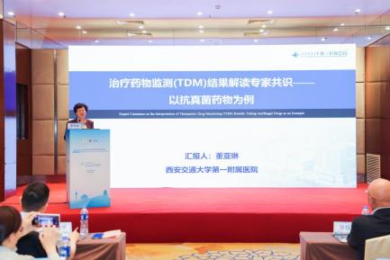 中日友好医院张相林教授系统阐述了大分子药物TDM研究的前沿进展,指出当前TDM技术面临的检测标准化、个体化阈值界定等核心挑战,并提出基于多组学整合分析的未来发展方向。上海交通大学附属胸科医院焦正教授通过典型案例,展示了模型引导的精准用药体系如何通过药动学/药效学(PK/PD)建模、机器学习算法等技术手段,显著提升复杂疾病用药的精准性与患者依从性。西安交通大学第一附属医院董亚琳教授分享了抗真菌药物个体化治疗的最新实践,强调通过TDM报告解读结合基因检测,可显著降低侵袭性真菌病的治疗失败率。上海交通大学医学院附属精神卫生中心林萍教授则探讨了数字疗法与TDM的协同应用,展示人工智能辅助的精神药物剂量优化系统在临床中的转化成果。西安交通大学第二附属医院刘欣教授通过炎症性肠病治疗监测数据,证实生物制剂进行TDM可降低30%的继发性失效风险,为精准用药提供了循证依据。